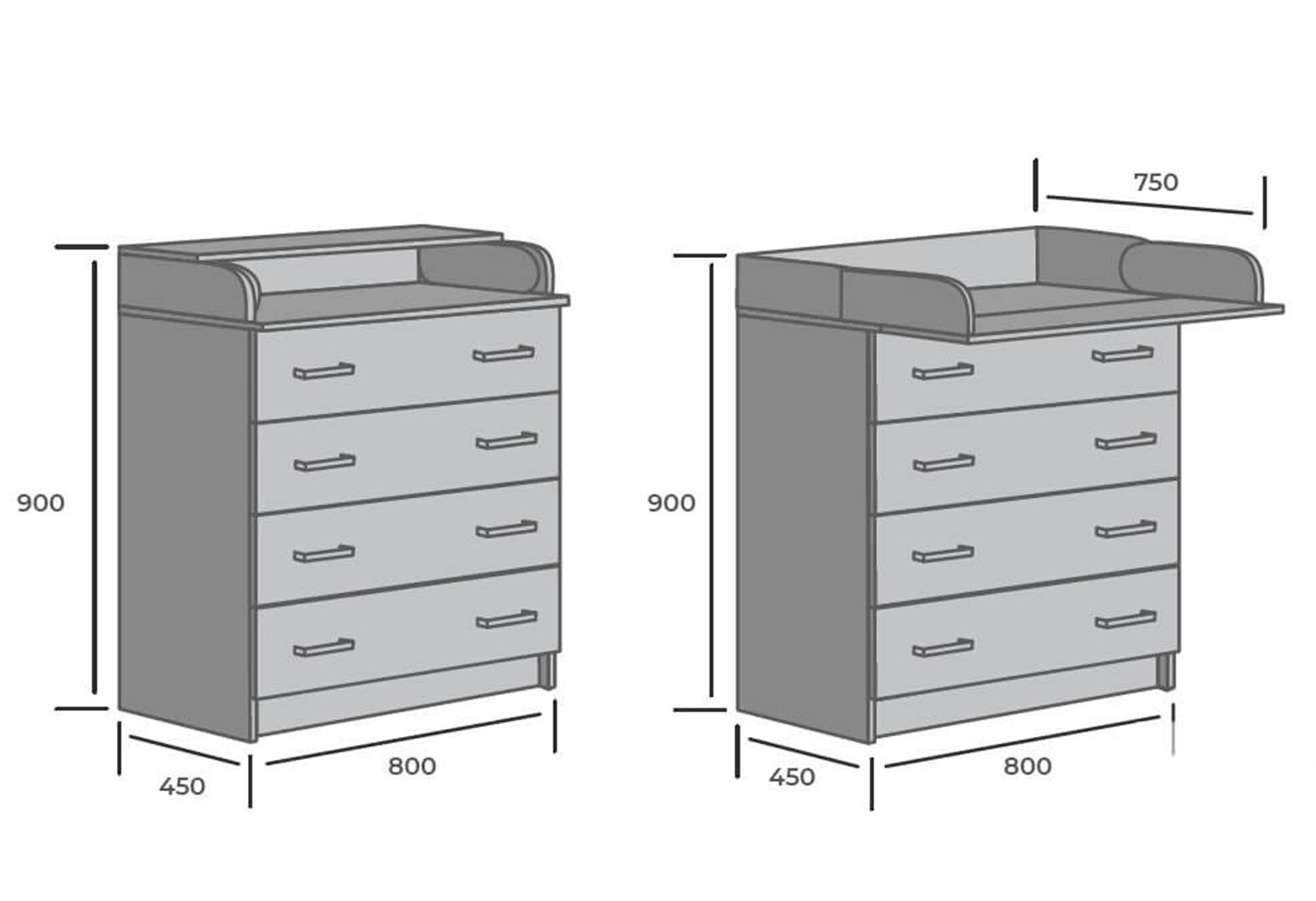 Зображення 4 - Комод MebelStar з 4 шухлядами та пеленальною надбудовою 80 см дуб тахо