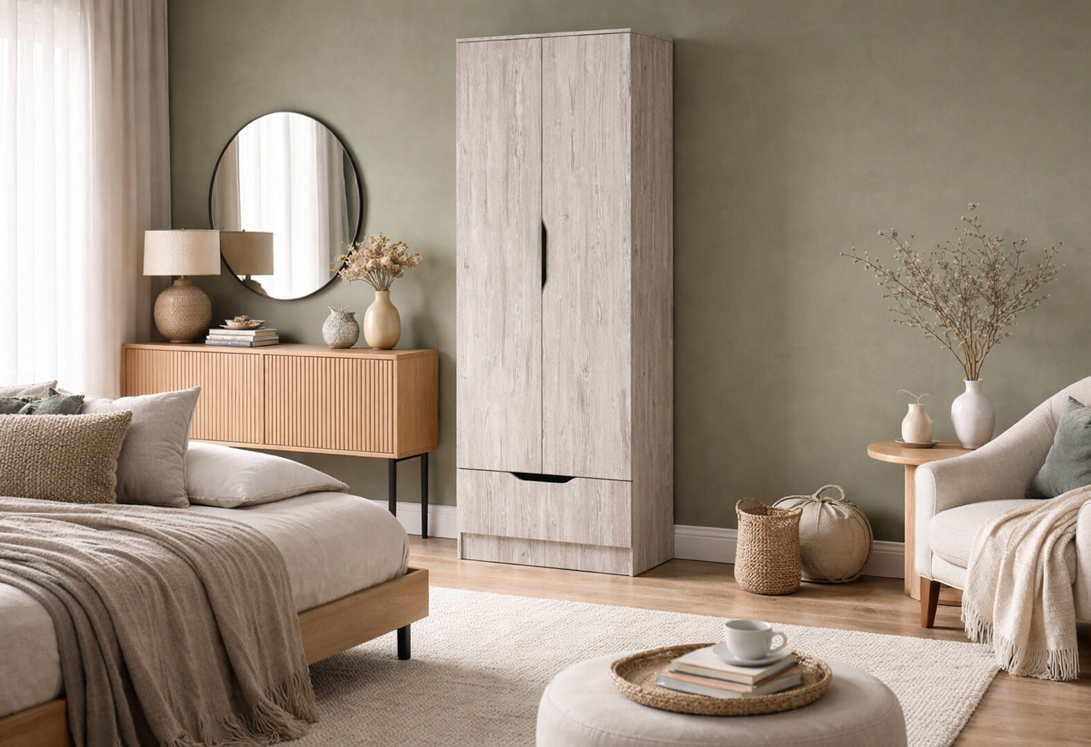 Шафа Світ Меблів Локі 2-дверна з шухлядою 80 см, Артвуд світлий