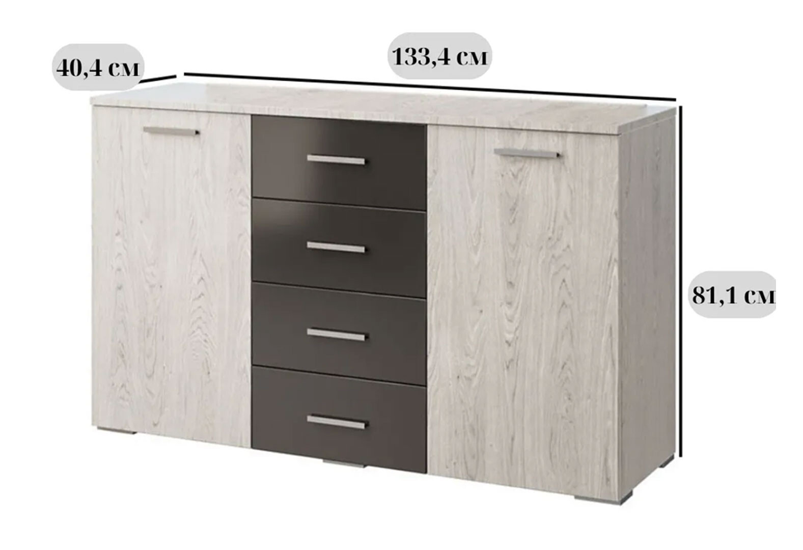 Комод Світ Меблів Лілея Нова 2-дверний з 4 шухлядами 133 см Артвуд світлий / Артвуд світлий, антрацит