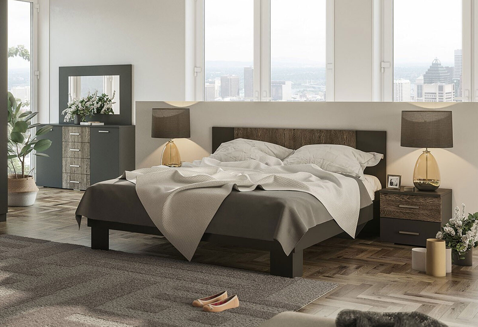 Тумба приліжкова Світ Меблів Лілея Нова з 2 шухлядами 45 см Антрацит / Дуб гранж колоніальний, антрацит