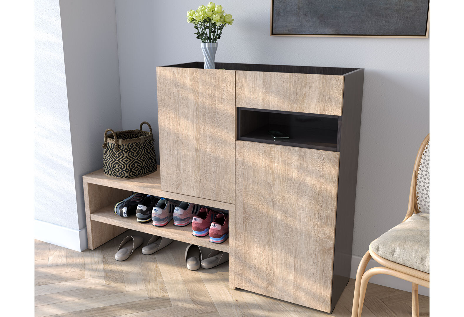 - Тумба для взуття Moreli RS-4 з дверцятами, полицями та шухлядою 85 см венге магія / дуб сонома