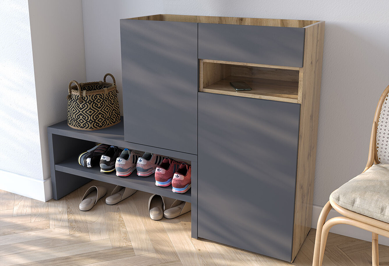- Тумба для взуття Moreli RS-4 з дверцятами, полицями та шухлядою 85 см дуб аппалачі / антрацит