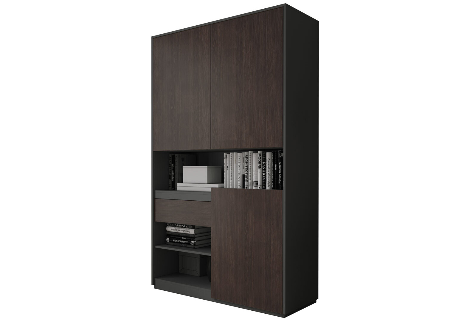 Пенал Moreli RS-1 з полицями, дверцятами та шухлядою 124 см антрацит венге магія