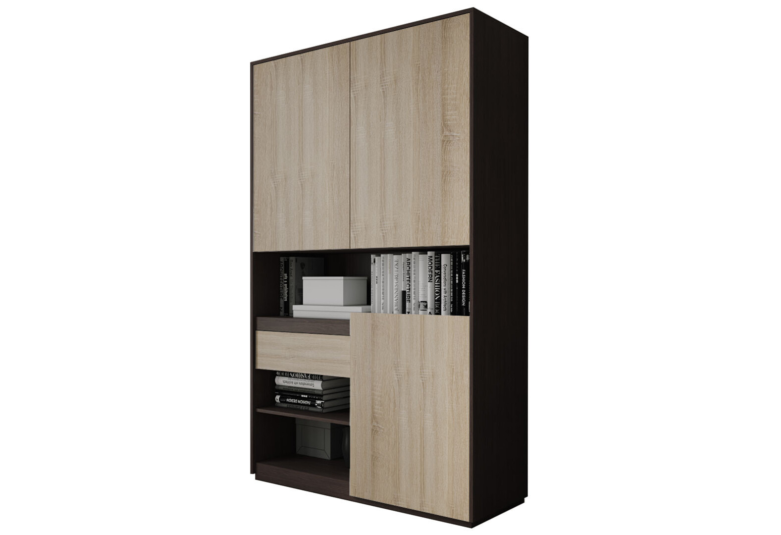 Пенал Moreli RS-1 з полицями, дверцятами та шухлядою 124 см венге магія дуб сонома