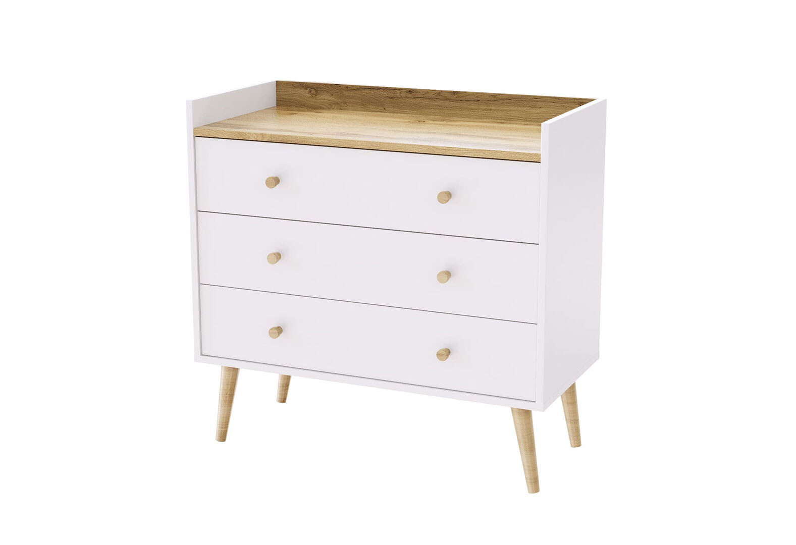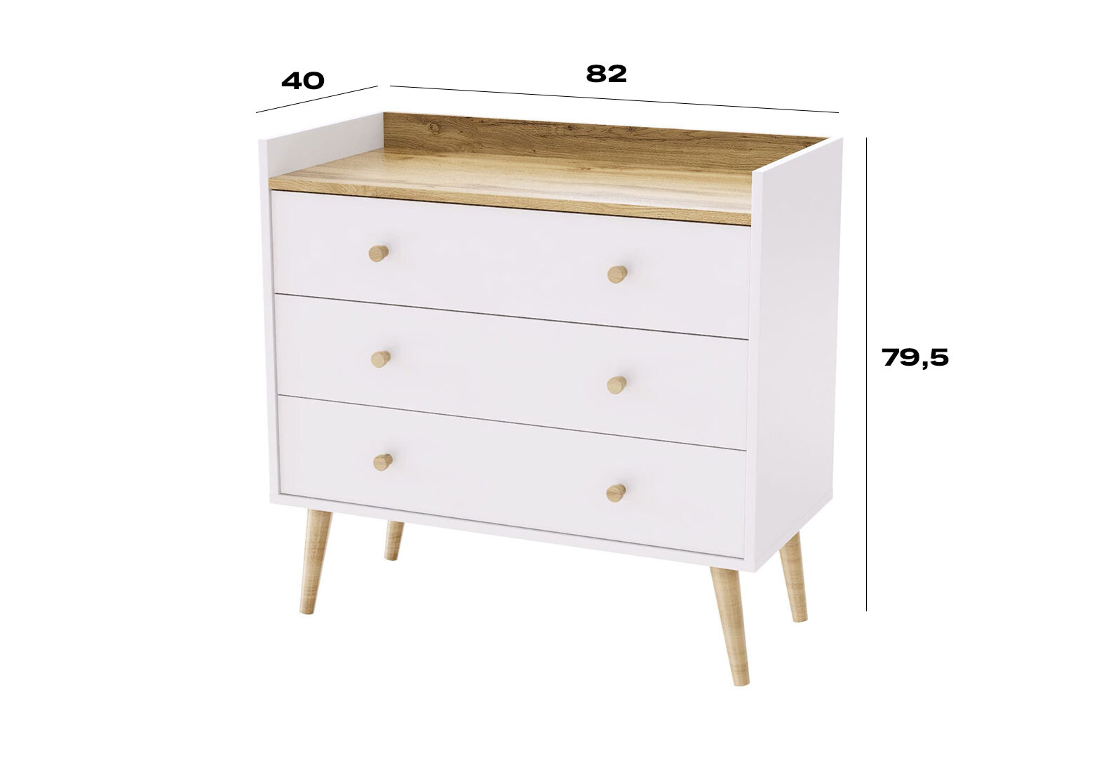 Комод 3 Art In Head Асгард / Asgard з 3 шухлядами 82 см, білий діамант / дуб крафт золотий