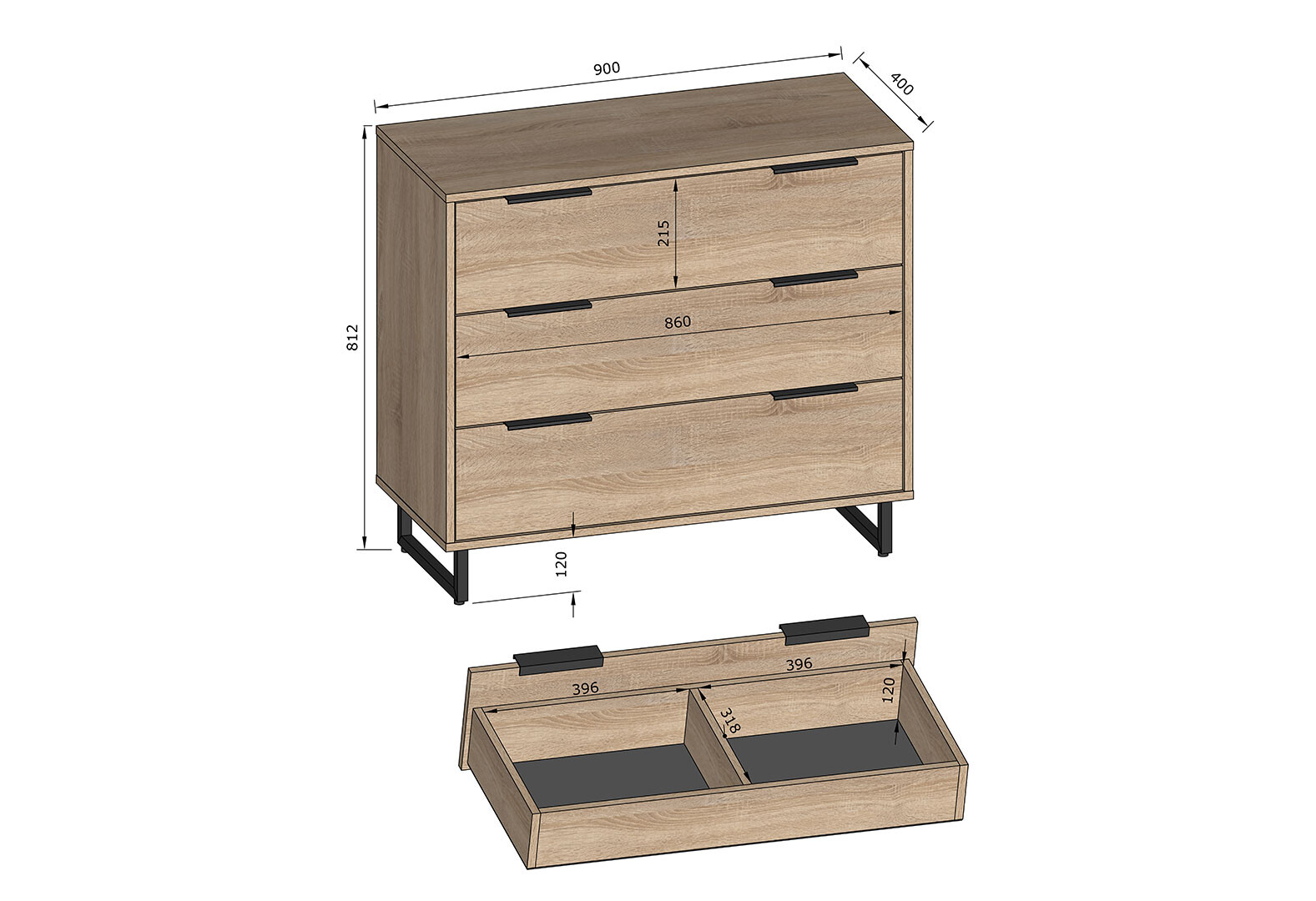 Комод Moreli F-0008 Forte / Форте, 90 см бетон темний