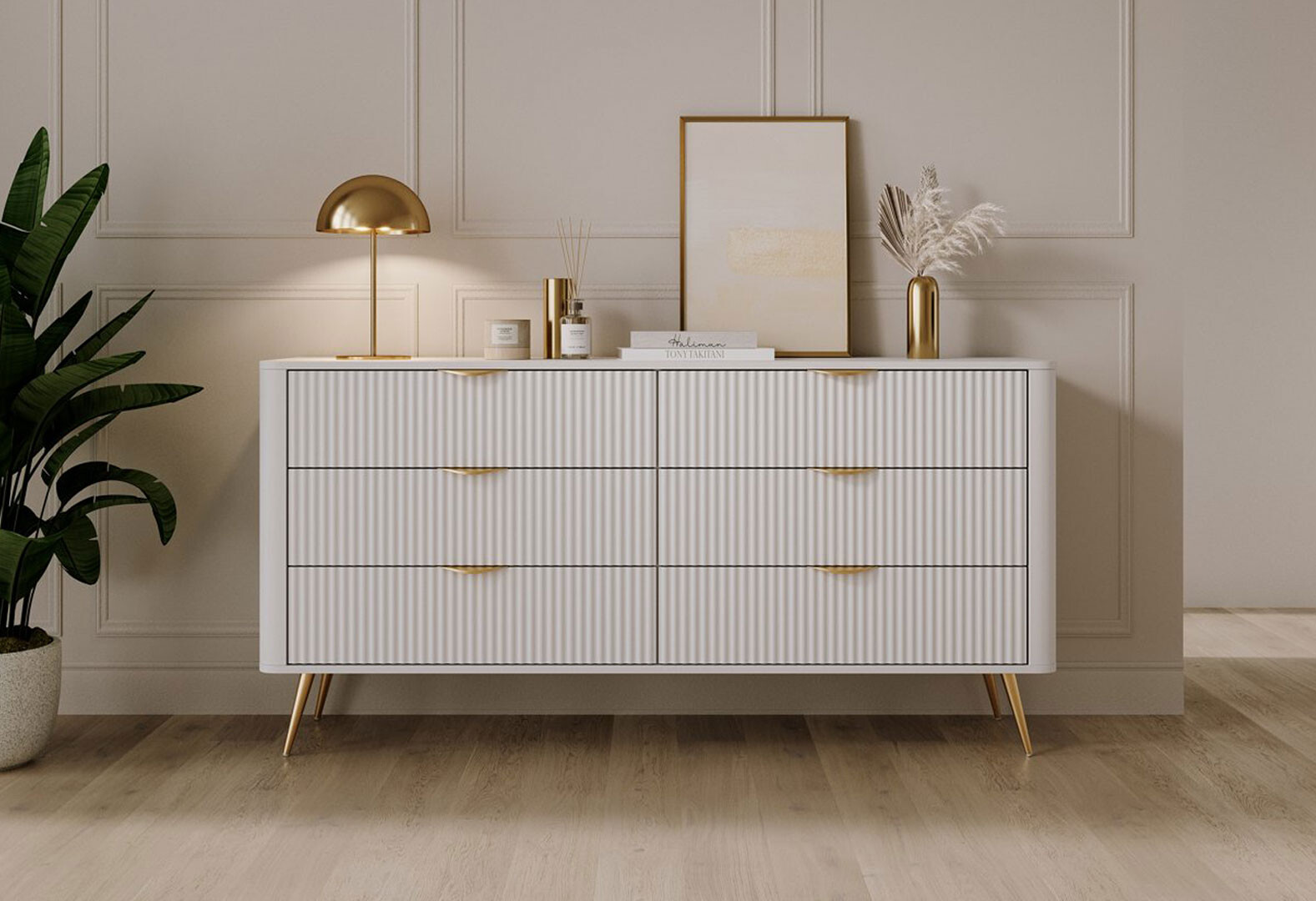 - Комод Perfect Home Ланте / Lante з 6 шухлядами 163 см, білий, золоті ніжки