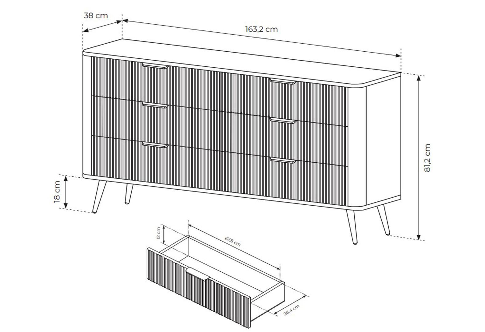 Комод Perfect Home Ланте / Lante з 6 шухлядами 163 см, білий, золоті ніжки