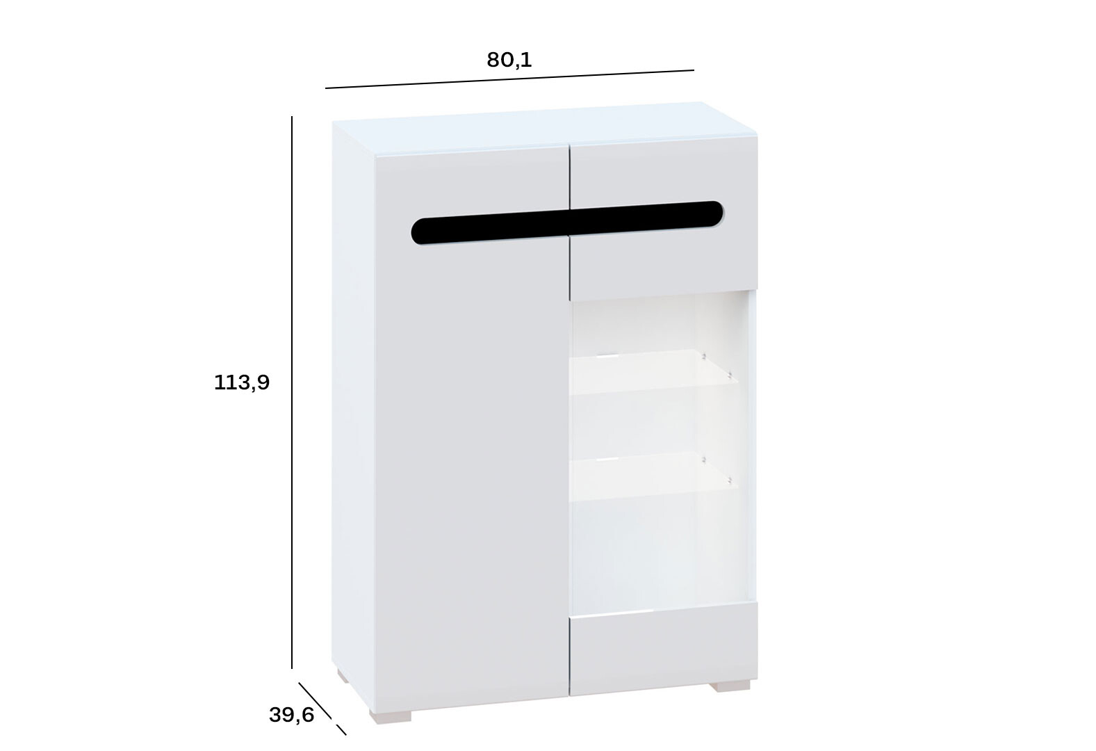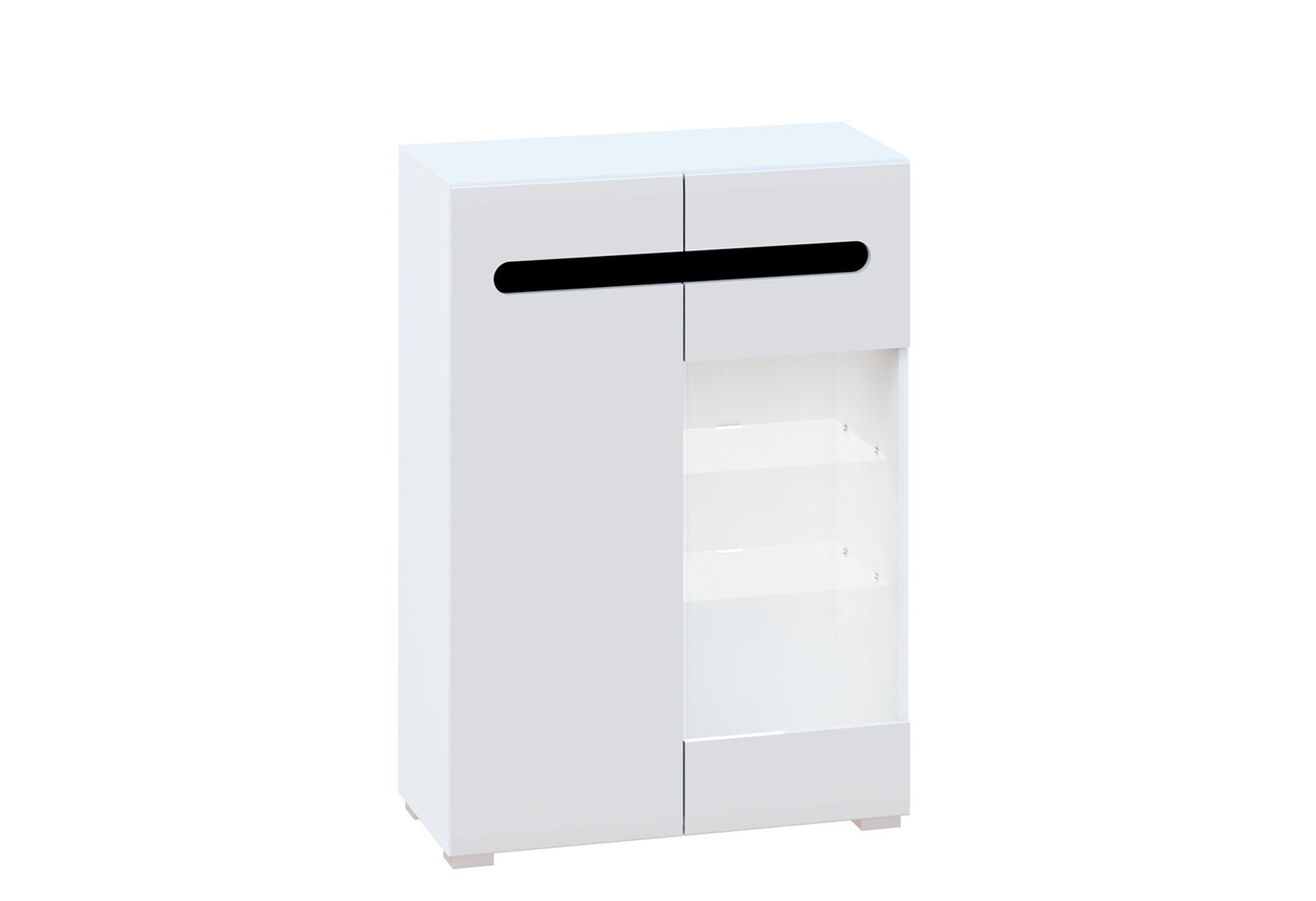 Комод Світ Меблів Бянко 2-дверний з вітриною 80 см Білий з чорною вставкою