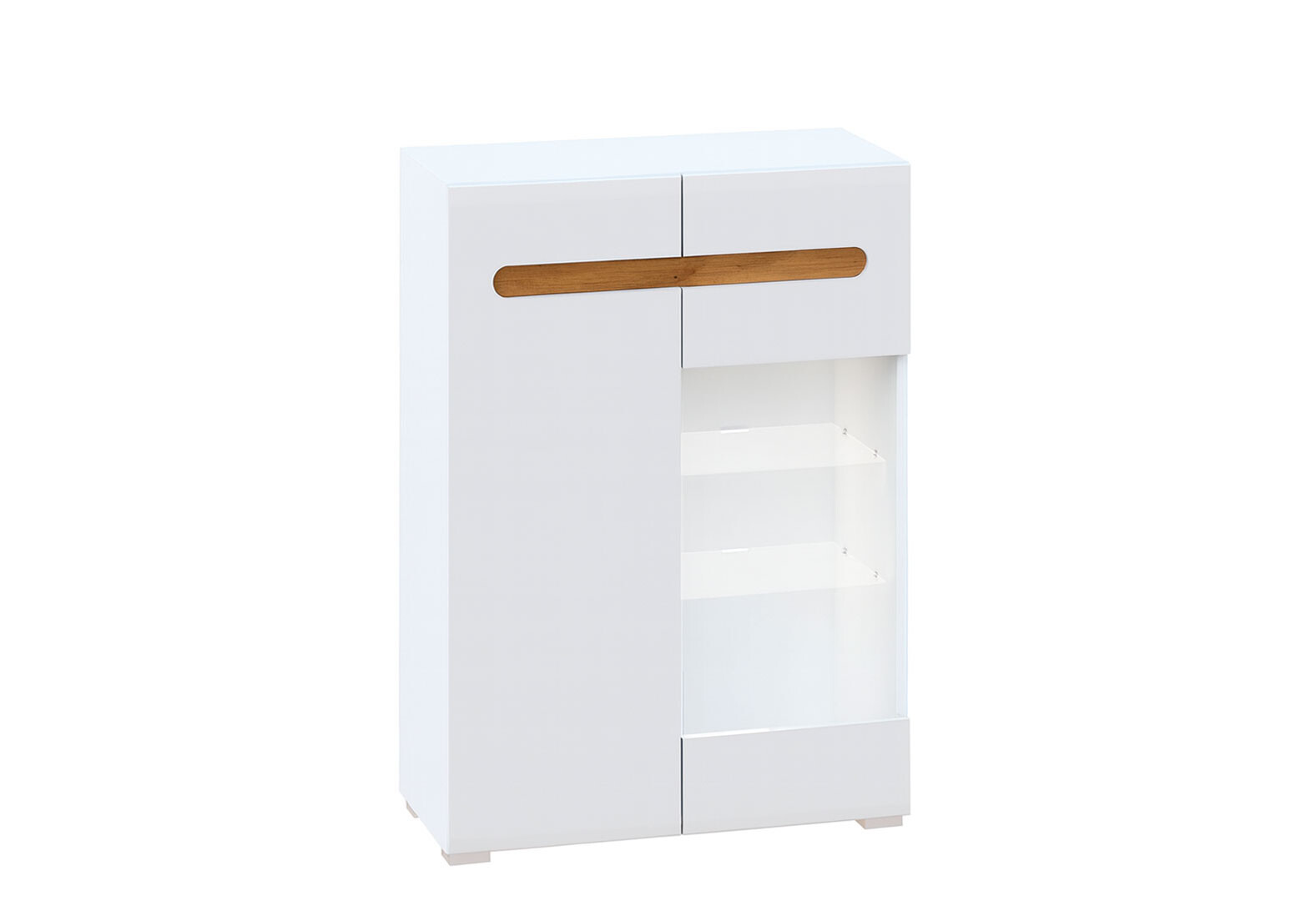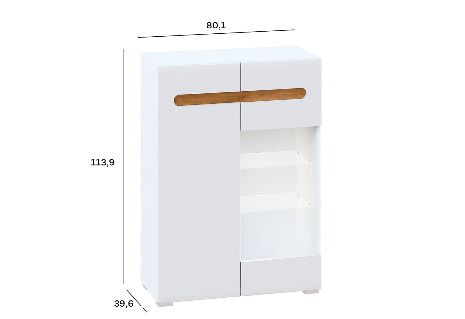 Комод Світ Меблів Бянко 2-дверний з вітриною 80 см Білий з вставкою дуб аппалачі