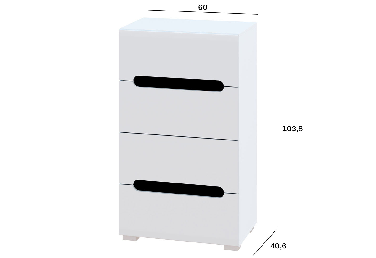 - Комод Світ Меблів Бянко з 4 шухлядами 60 см Білий з чорною вставкою