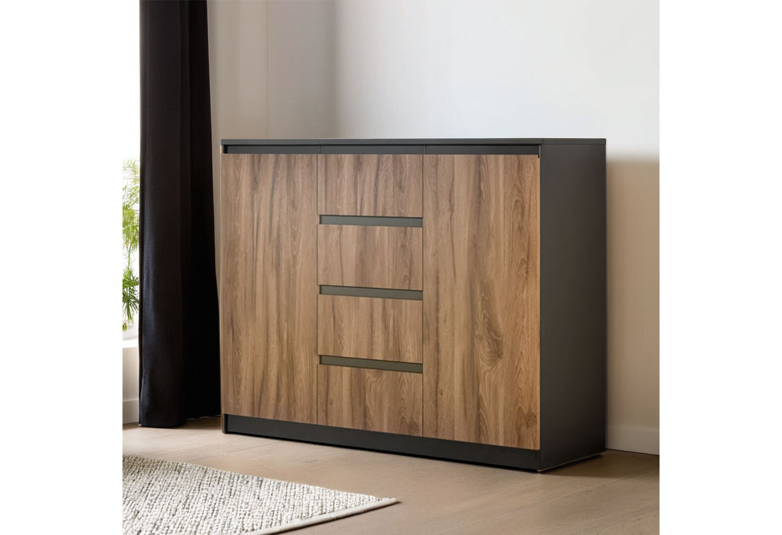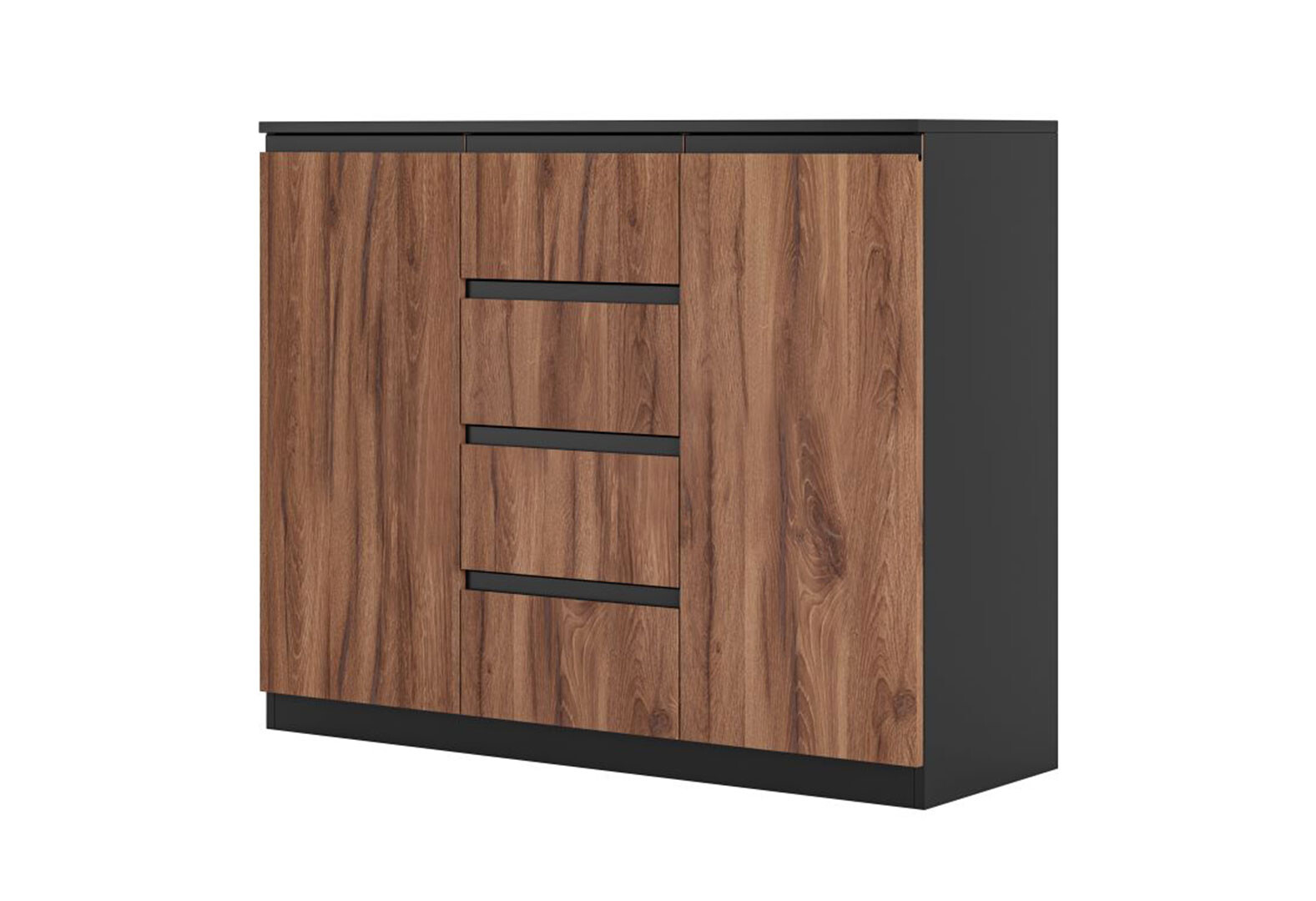 - Комод Світ Меблів Фріда з 2 дверками і 4 шухлядами 120 см, чорний / дуб ліворно