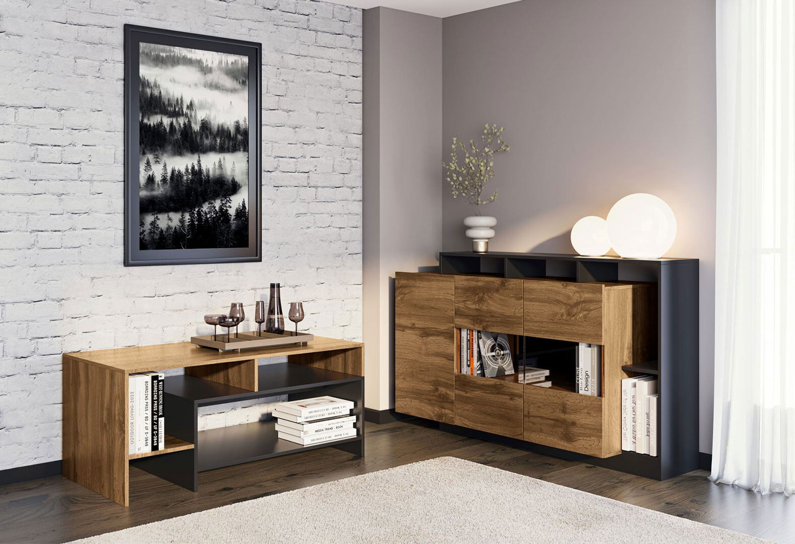 Комод Світ Меблів Каліста 3ДСк 155 см, дуб аппалачі / антрацит