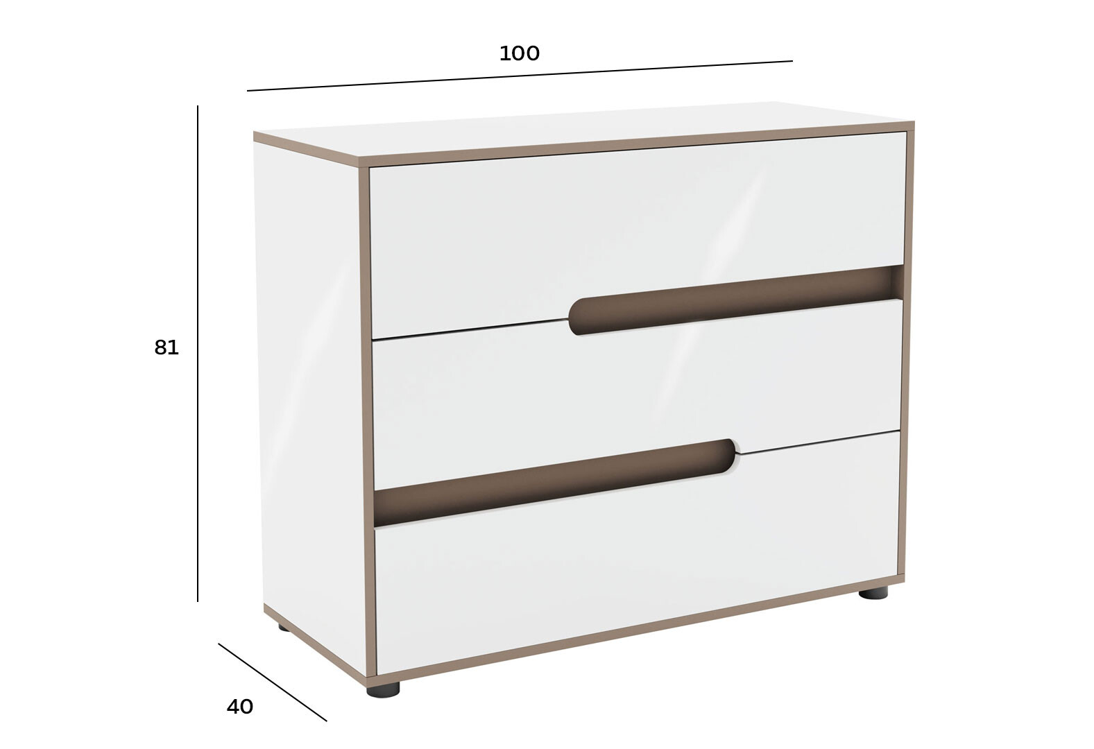 Зображення 1 - Комод Світ Меблів Лінда з 3 шухлядами 100 см, Німфеа Альба, лак, вставки тоффі