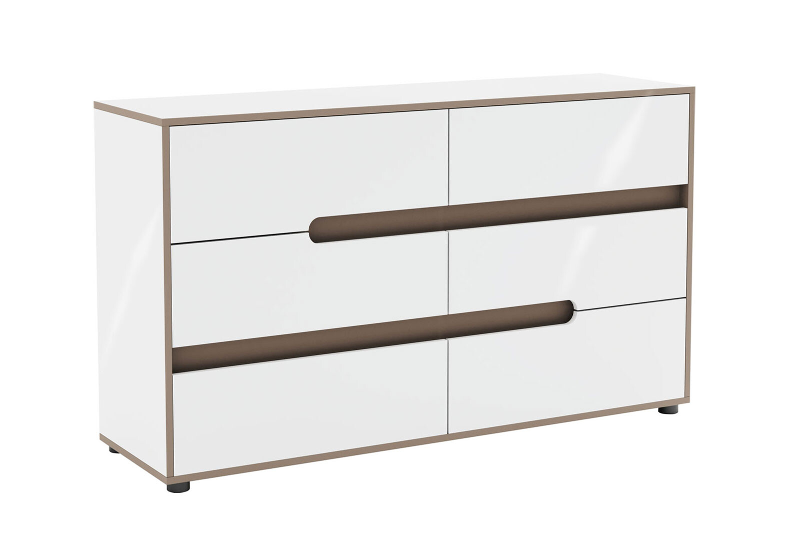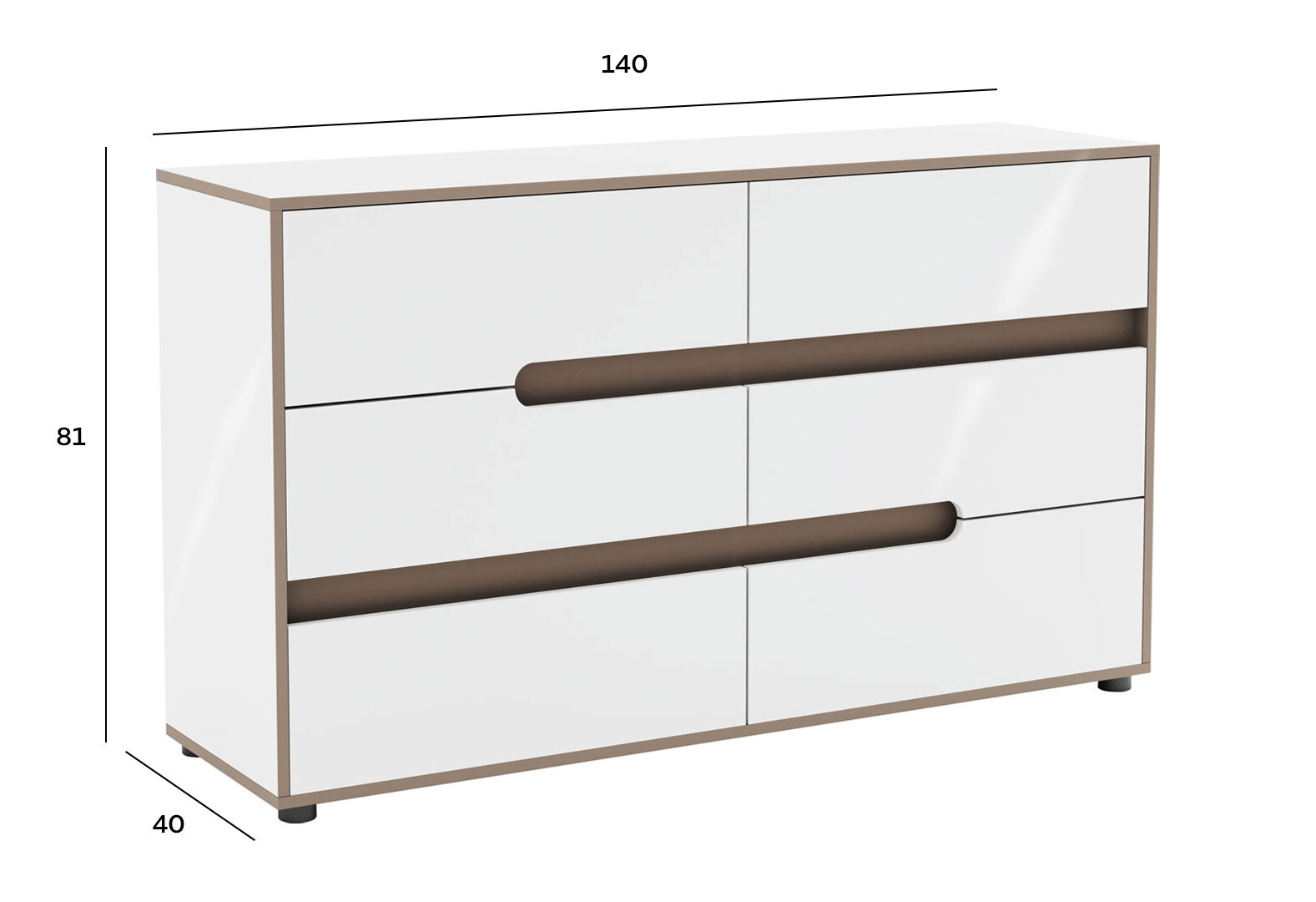 Комод Світ Меблів Лінда з 6 шухлядами 140 см, Німфеа Альба, лак, вставки тоффі