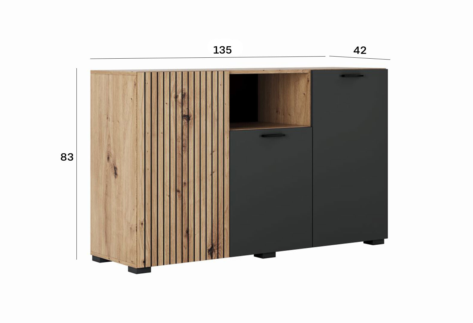 Комод Світ Меблів Зара 135 см з полицею та дверцятами, дуб артизан / антрацит