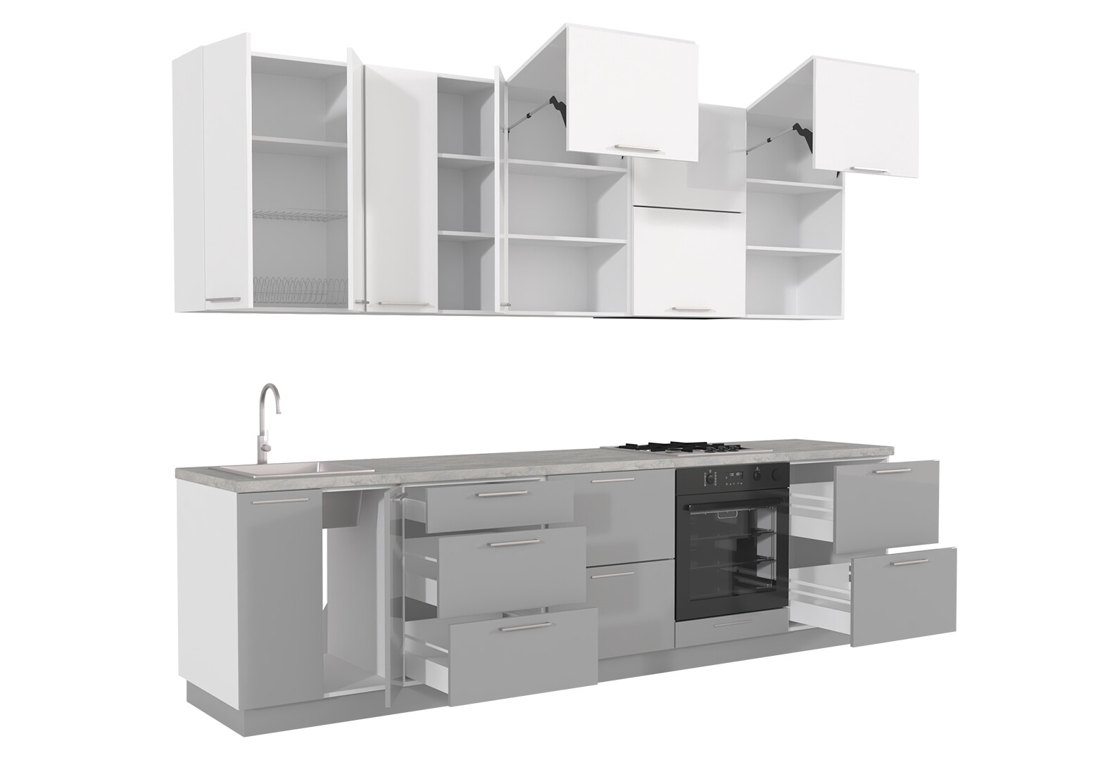 Кухня Мері / Mary 3.0 MiroMark Глянець Білий RAL 9003 / Глянець 7036 (Platinum grey), корп. білий