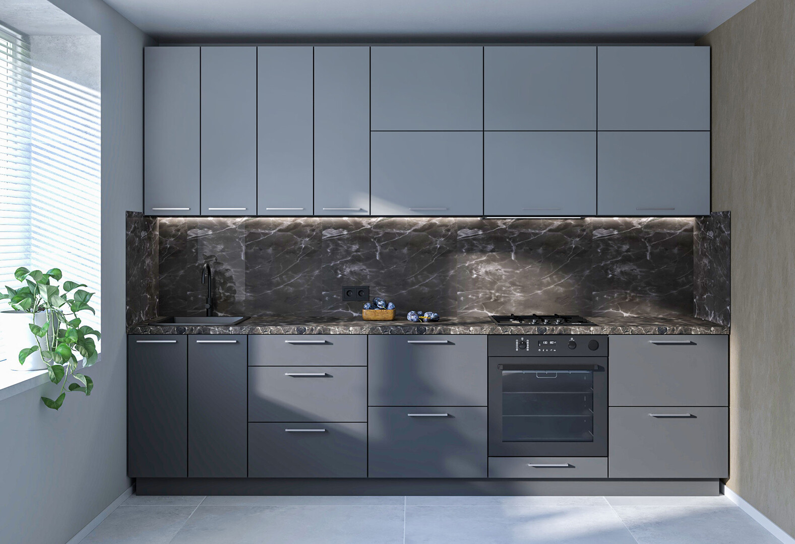 - Кухня Мері / Mary 3.0 MiroMark Напівмат Сірий RAL 7036 / Напівмат Темно-Сірий RAL 7043, корп. антрацит
