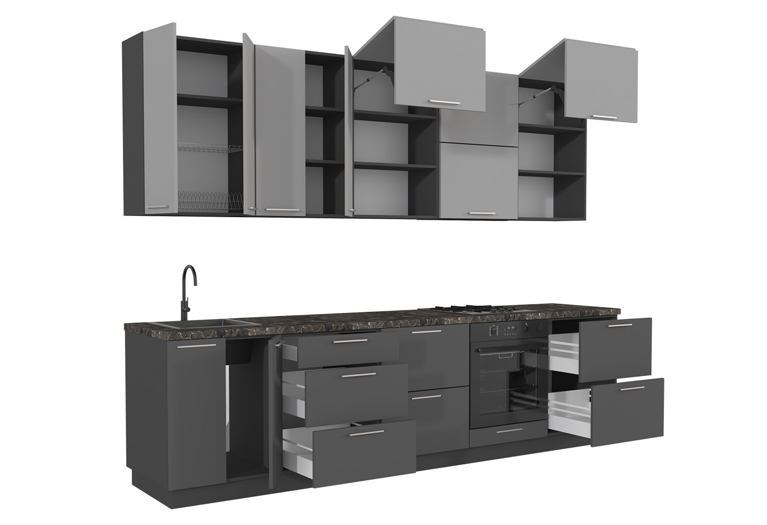 Кухня Мері / Mary 3.0 MiroMark Напівмат Сірий RAL 7036 / Напівмат Темно-Сірий RAL 7043, корп. антрацит