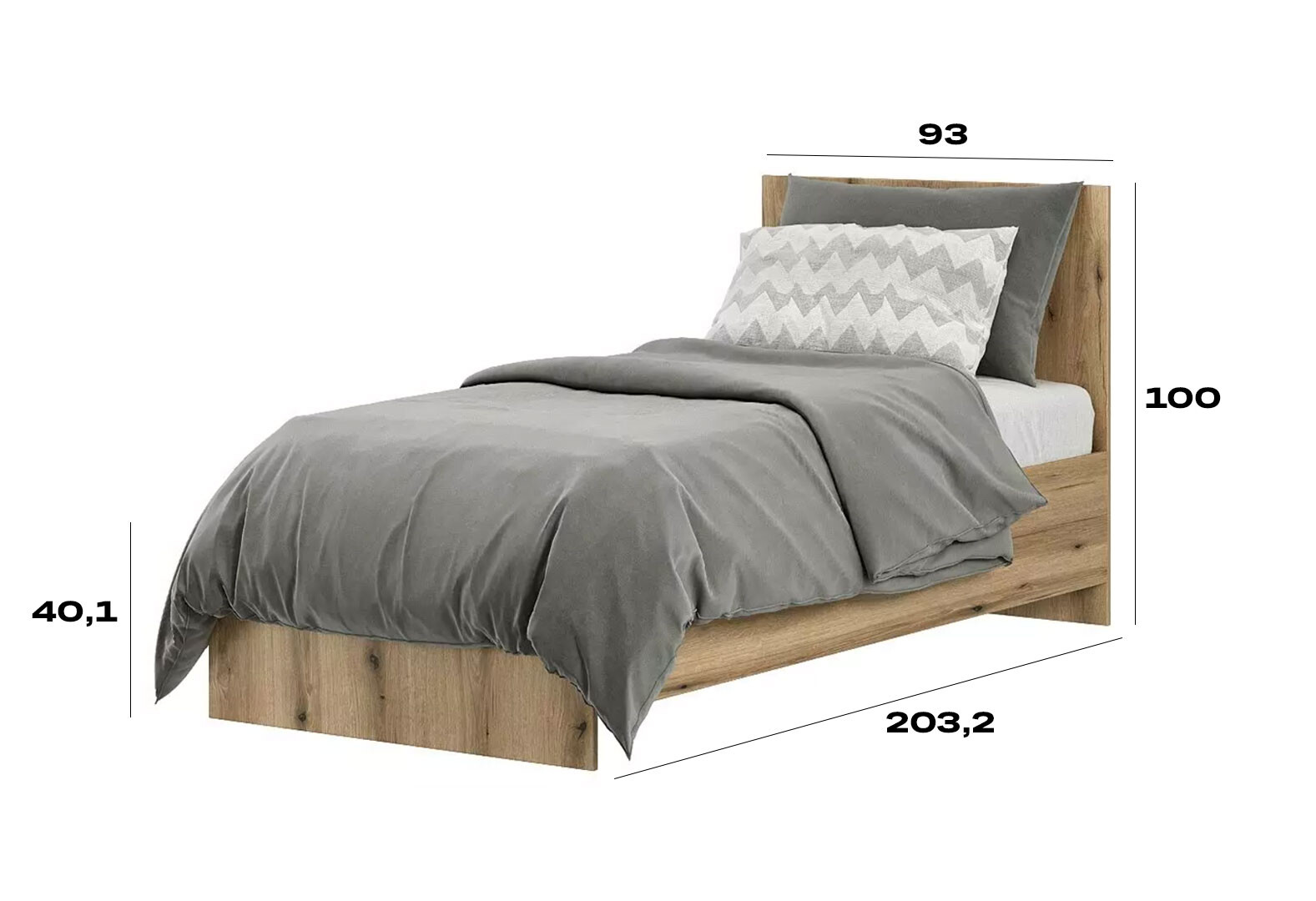 Ліжко Art In Head Light / Лайт 90х200 см, дуб евок