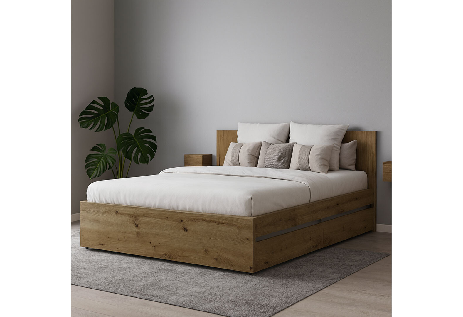 Ліжко Ідея Garant 160х200 см із вкладом та шухлядами, дуб артизан / німфея альба