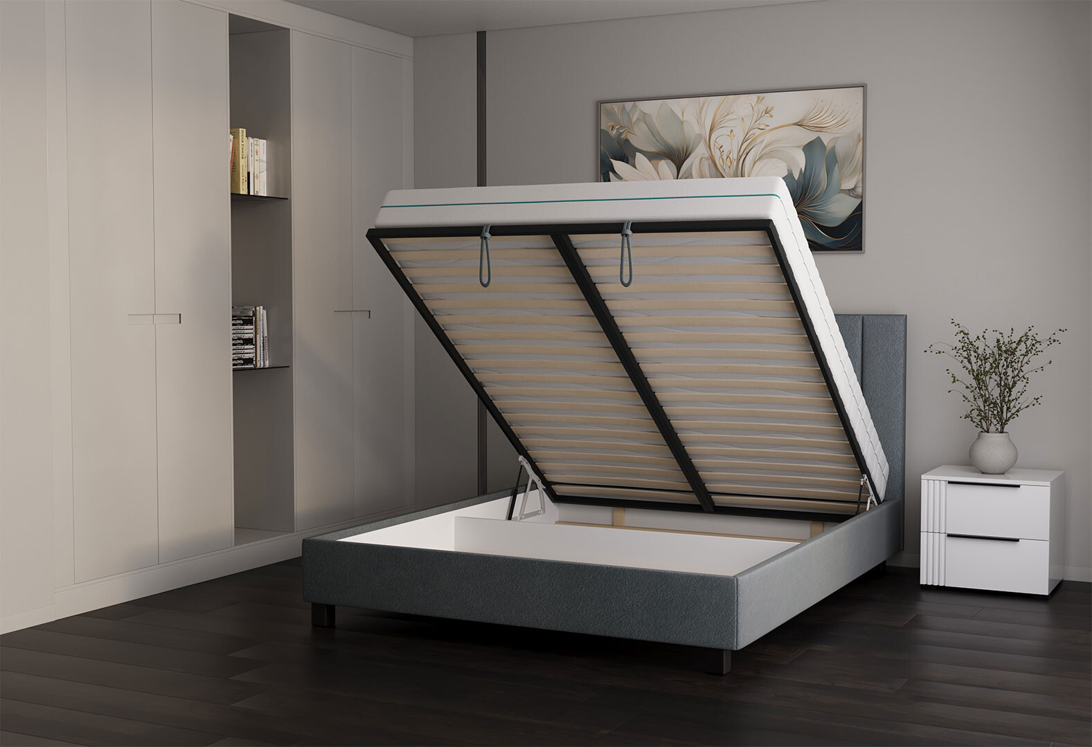 Ліжко VND Віола з підйомним механізмом 160х200 см, Делано 705 (сірий), ніжки венге