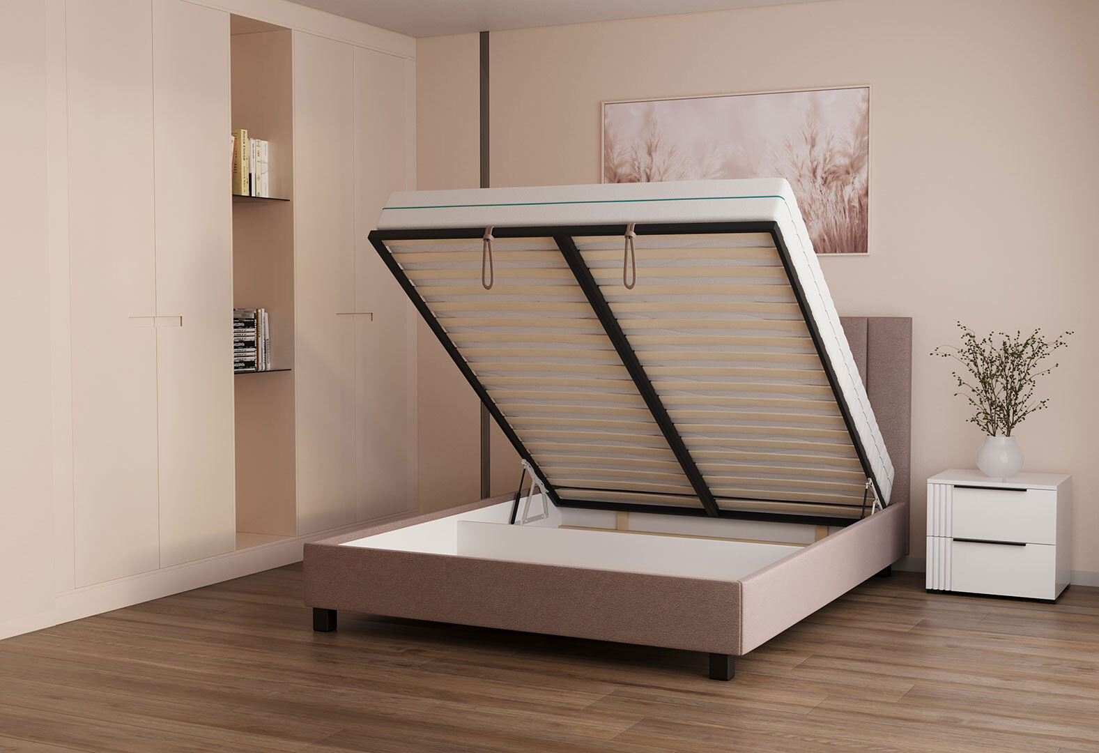 Ліжко VND Віола з підйомним механізмом 160х200 см, Зеніт 48 (беж), ніжки венге