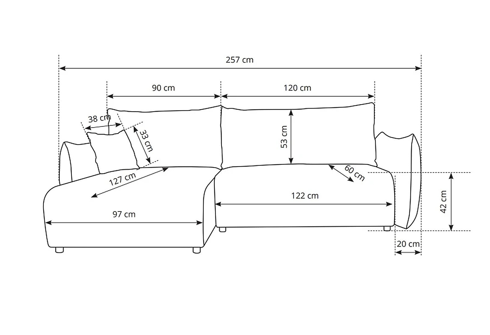 М'який куточок Perfect Home Аллора / Allora 257х177 см кут 7 Світло-сірий (Melody 14)