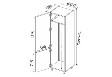 - Розмір: Ширина - 60.00 см, Висота - 232.00 см, Глибина - 58.00 см. Це оптимальні габарити для компактних кухонь, що дозволяють максимально ефективно використовувати простір.