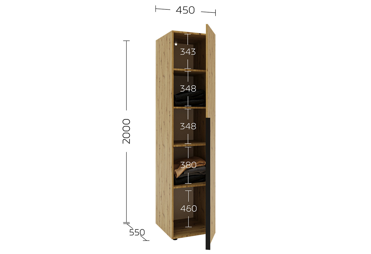 Пенал Garant Соло 1D_Sh з полицями 45 см, дуб артизан