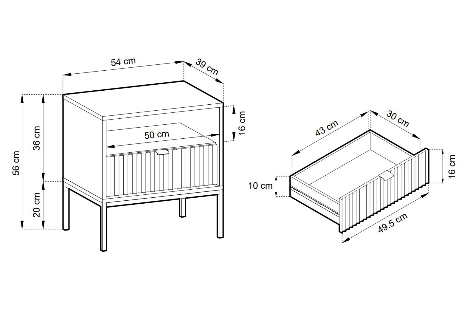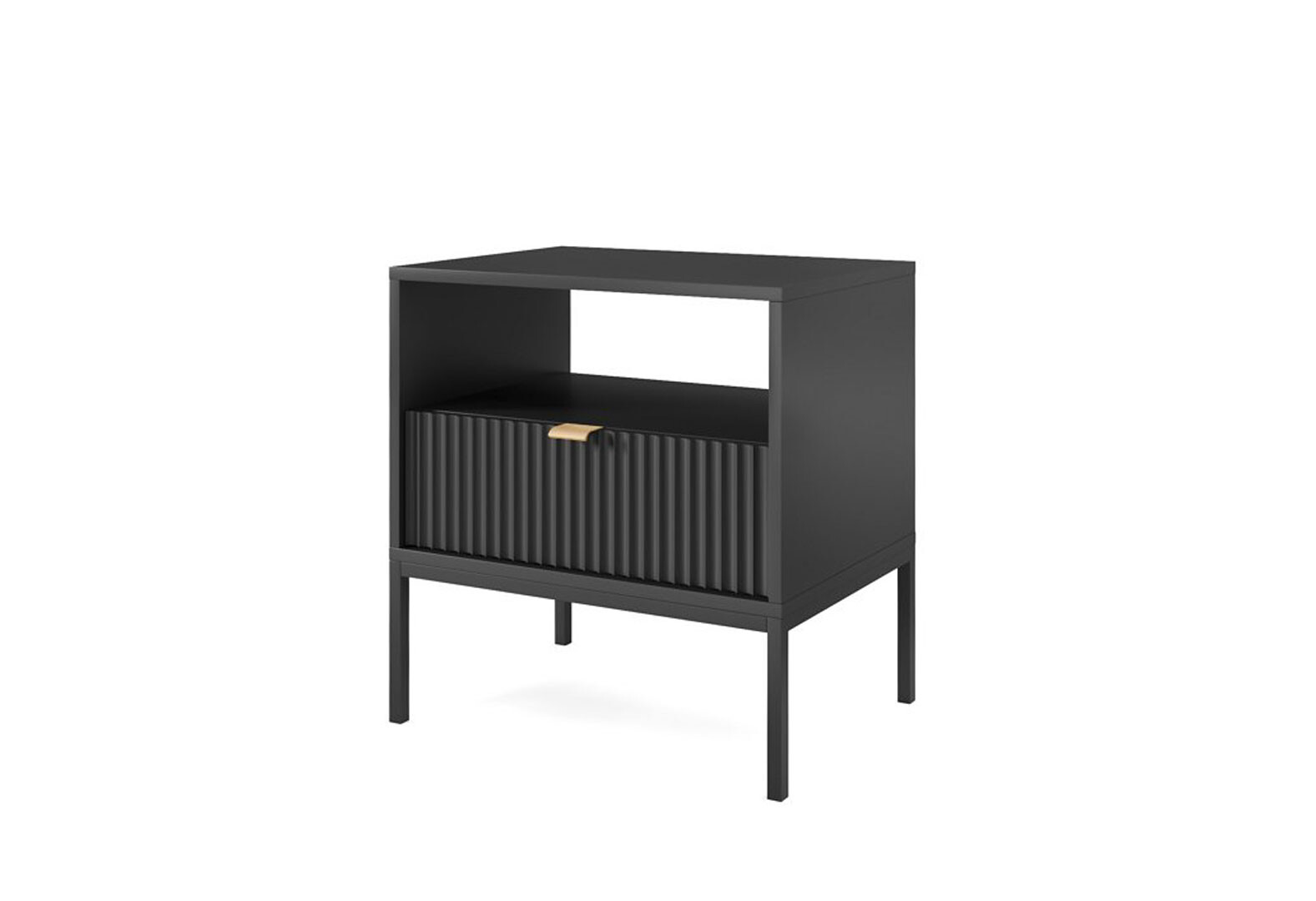 Приліжкова тумба Perfect Home Нова / Nova з шухлядою та полицею 54 см, чорний, чорні ніжки