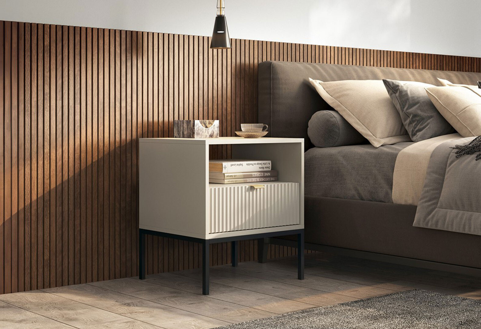 Приліжкова тумба Perfect Home Нова / Nova з шухлядою та полицею 54 см, кашемір, чорні ніжки