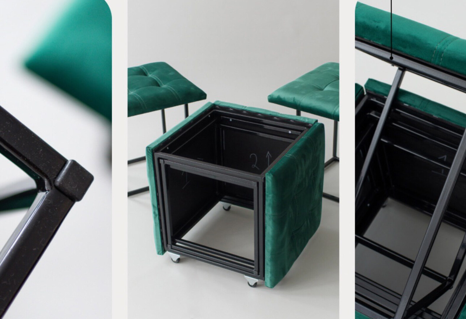 Зображення 5 - Пуф-трансформер Kredens furniture 5в1 50x50 см, Чорний метал / Зелений