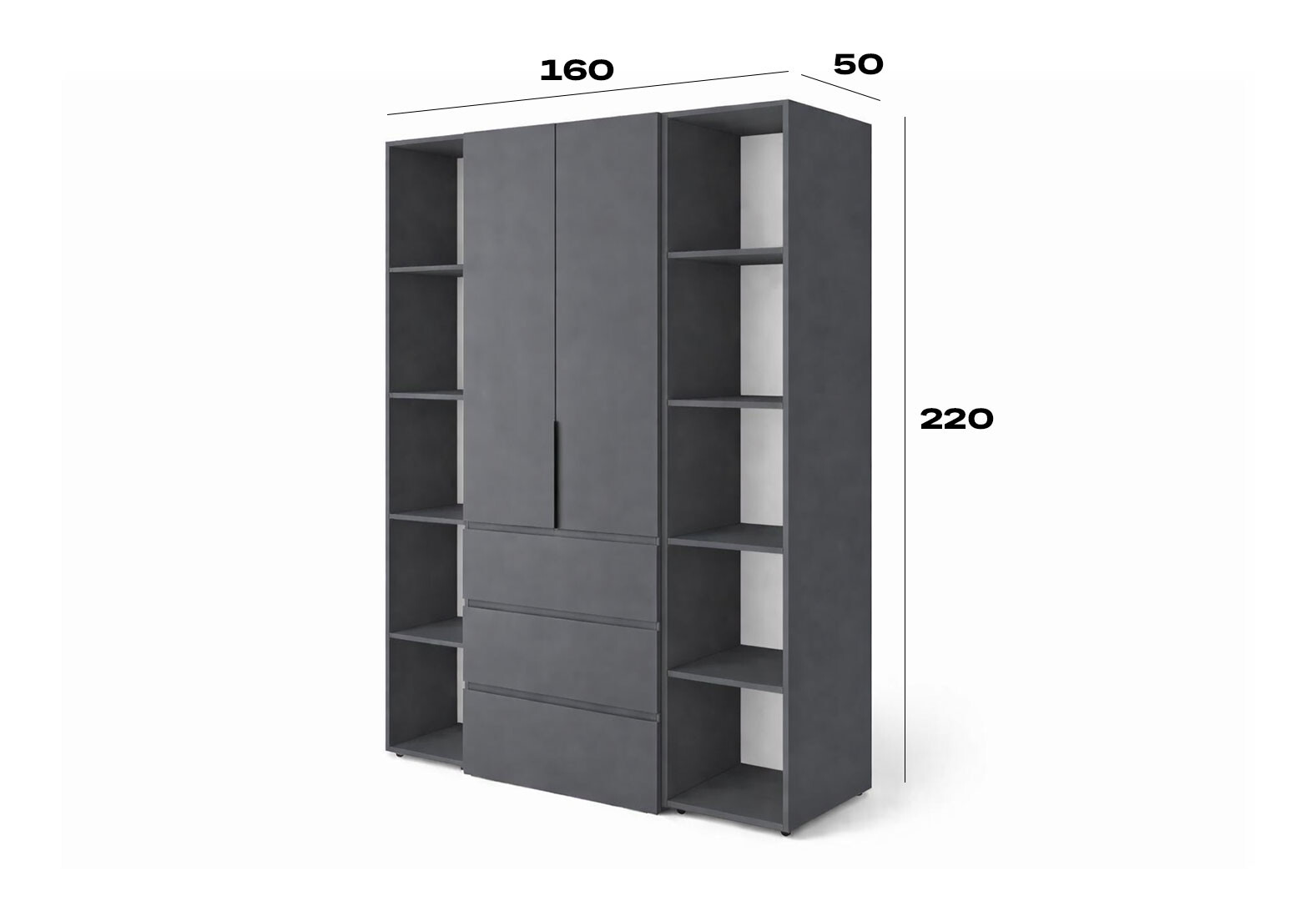 Шафа Art In Head Light / Лайт 2-дверна з 3 шухлядами та стелажами 160 см, графіт