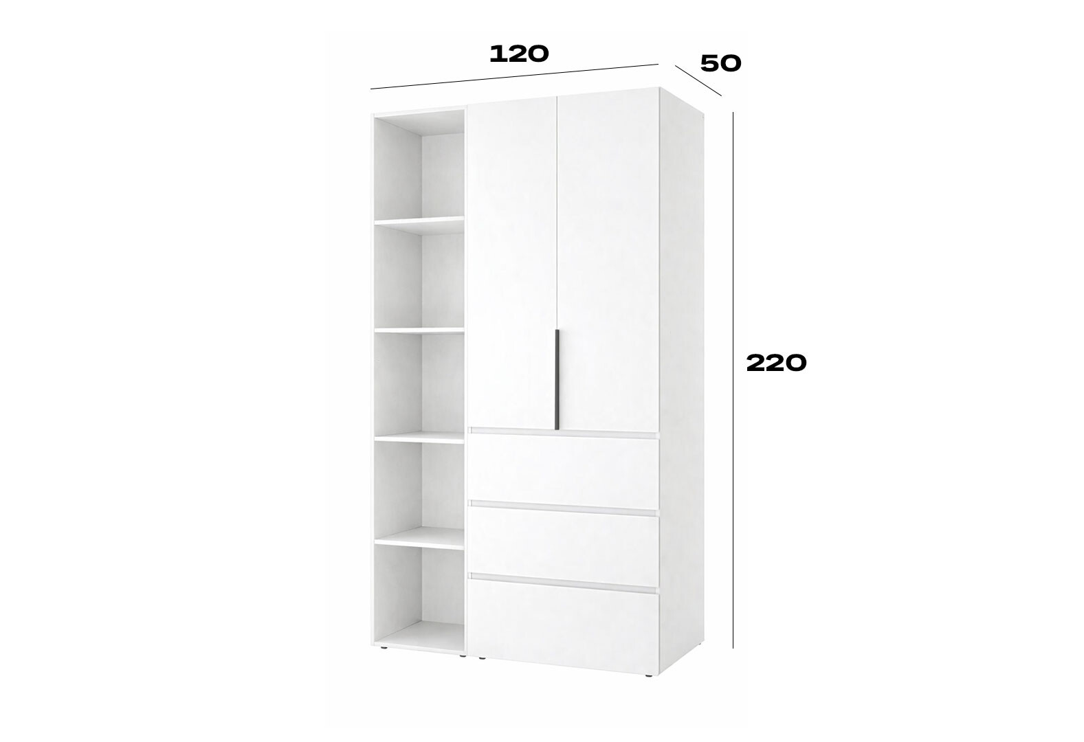 Шафа Art In Head Light / Лайт 2-дверна з 3 шухлядами та стелажем 120 см, білий діамант