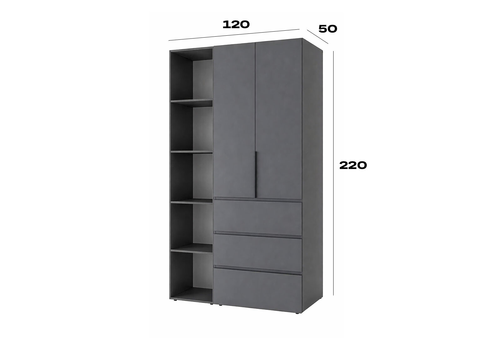 Шафа Art In Head Light / Лайт 2-дверна з 3 шухлядами та стелажем 120 см, графіт