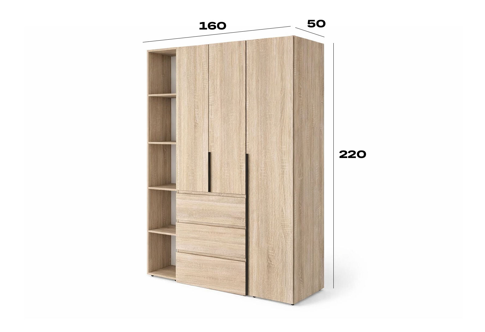 Шафа Art In Head Light / Лайт 3-дверна з 3 шухлядами та стелажем 160 см, дуб сонома