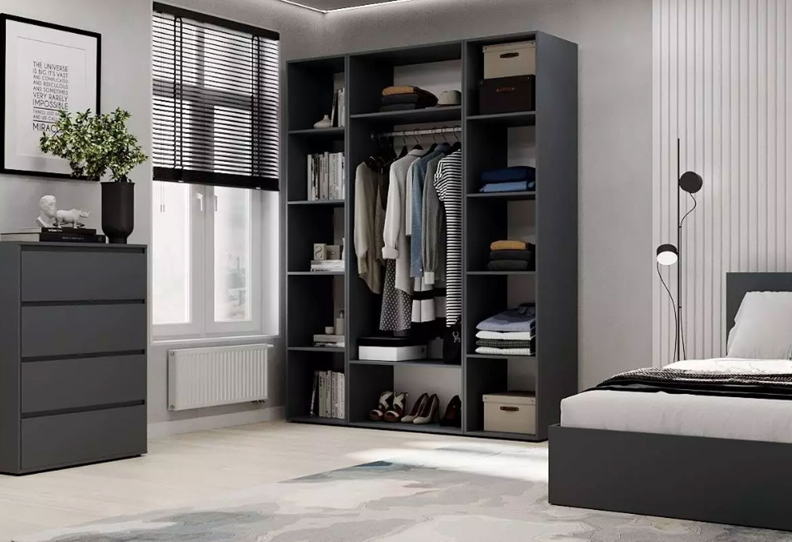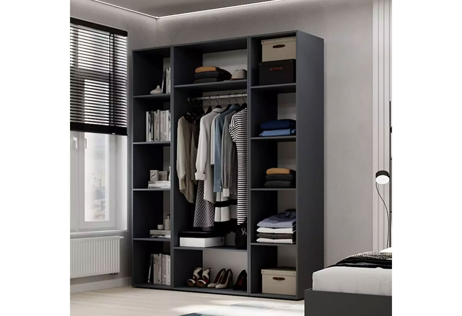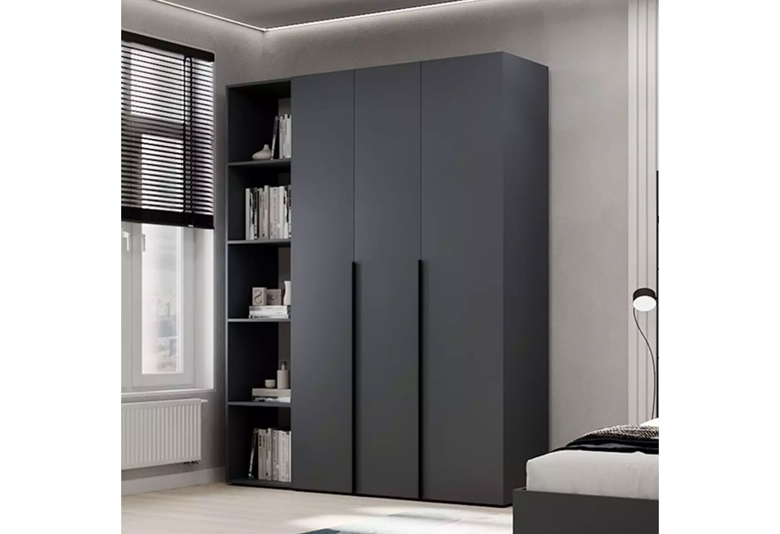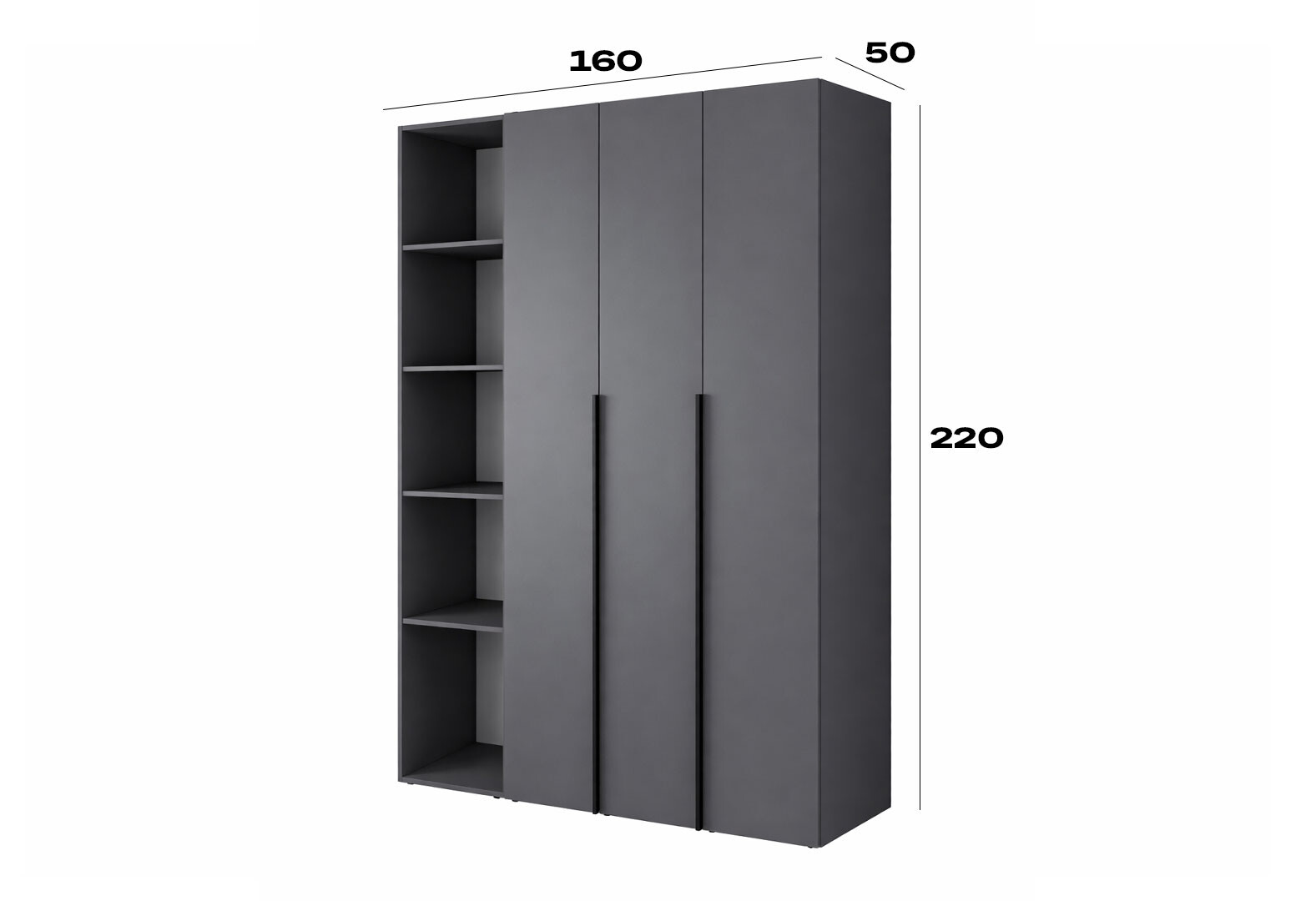 Шафа Art In Head Light / Лайт 3-дверна зі стелажем 160 см, графіт