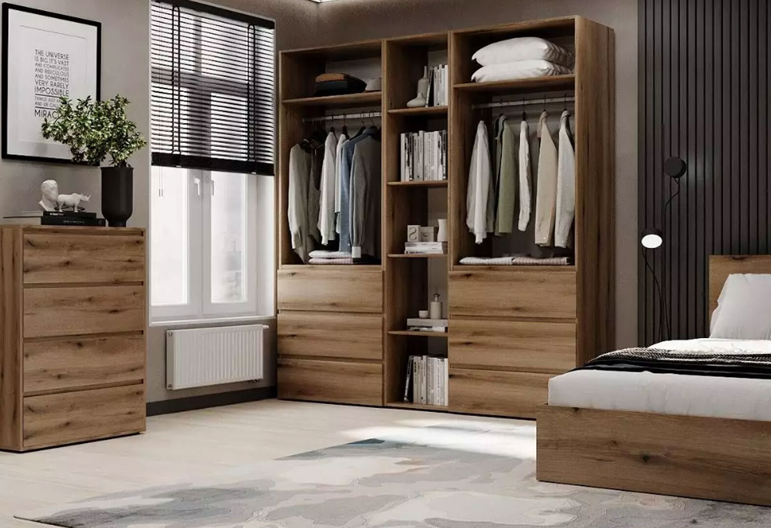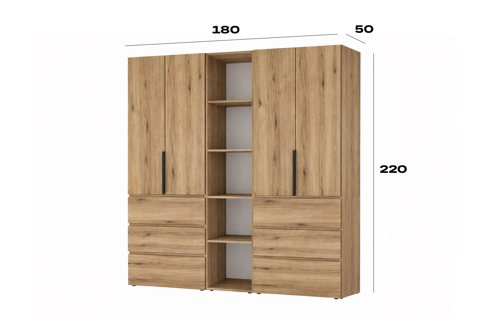 - Шафа Art In Head Light / Лайт 4-дверна з 6 шухлядами та стелажем 180 см, дуб евок