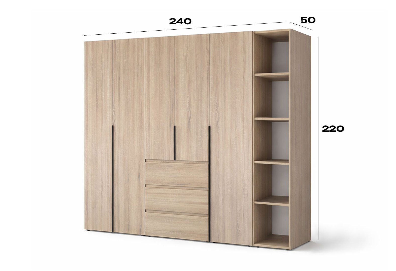 Шафа Art In Head Light / Лайт 5-дверна з 3-ма шухлядами і стелажем 240 см, дуб сонома