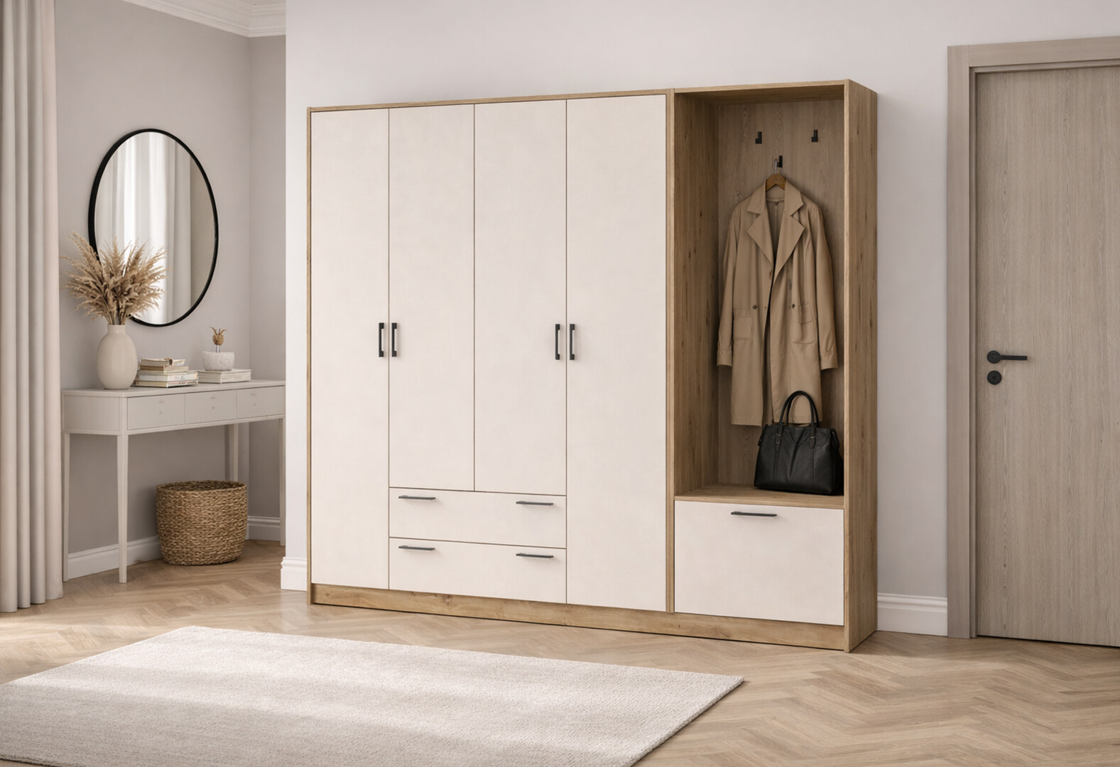- Шафа для одягу 4 ДСП Doros Ронді з вішалкою 220 см Дуб Артізан / Кашемір