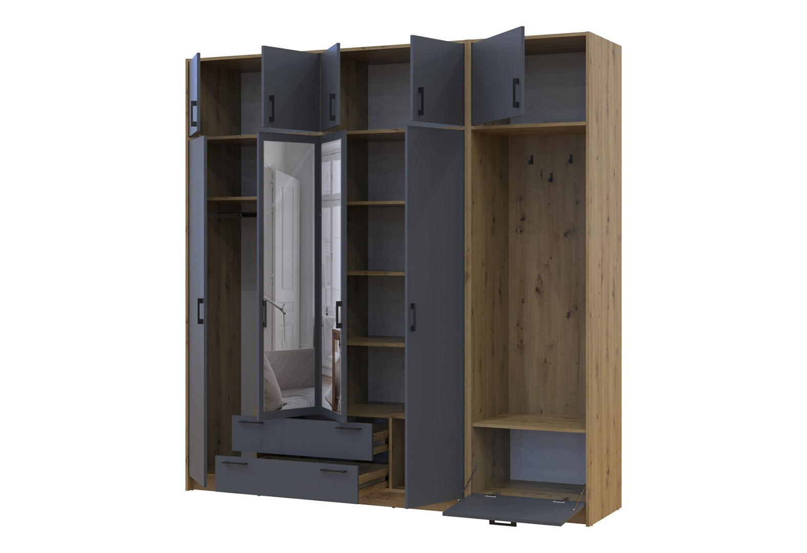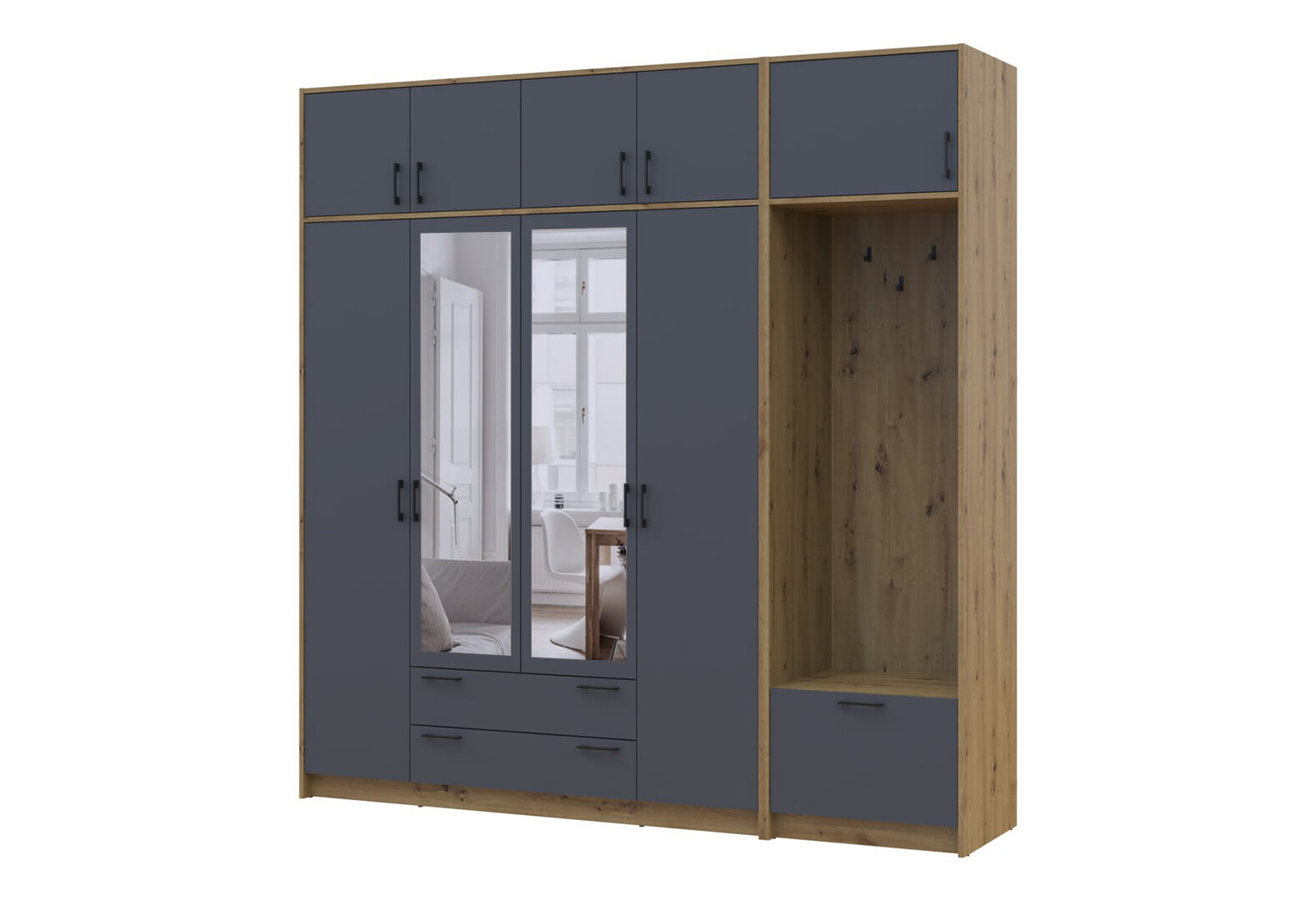 Шафа для одягу 4 ДСП Doros Ронді з вішалкою, дзеркалом та антресолею 220 см Дуб Артізан / Графіт