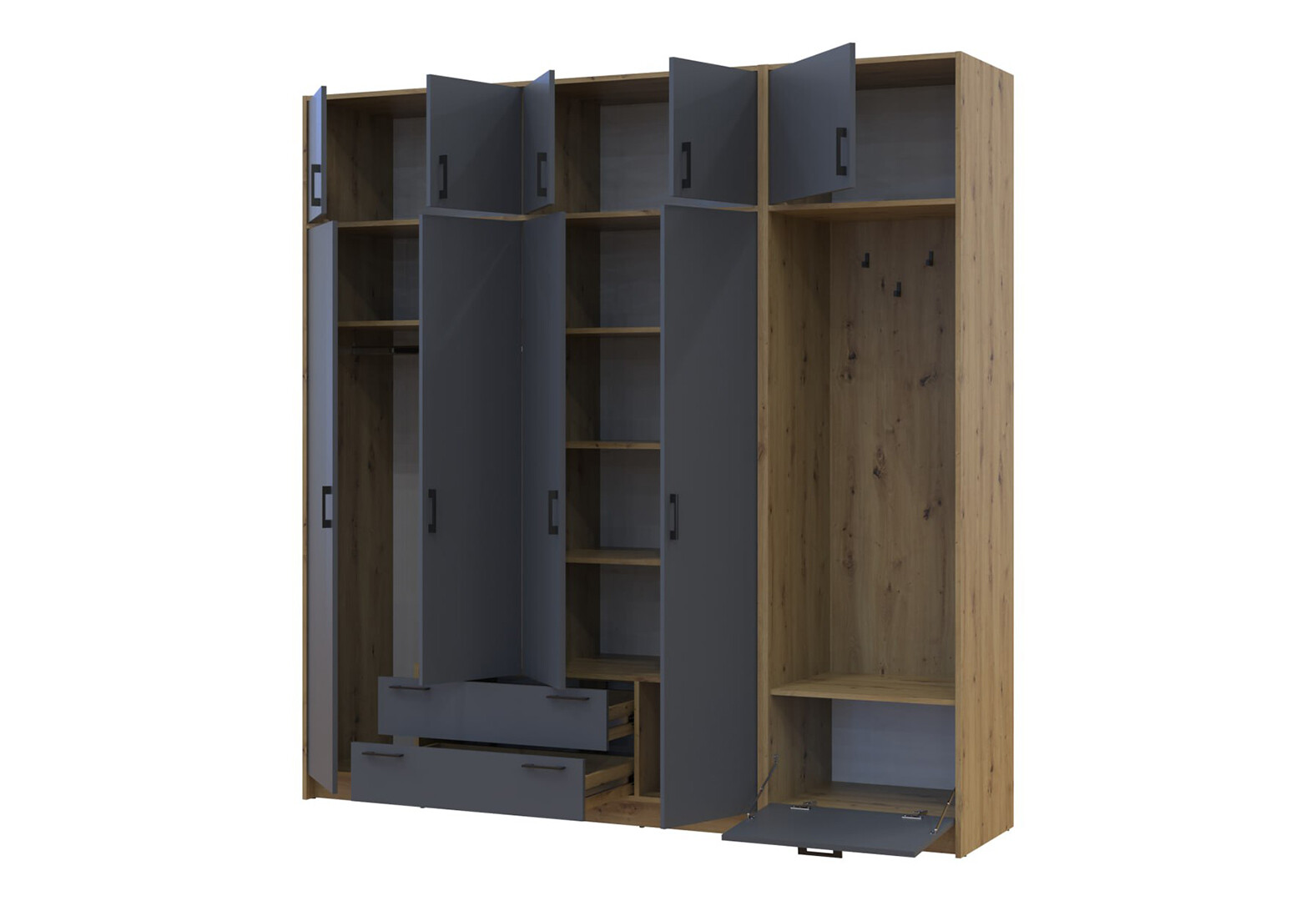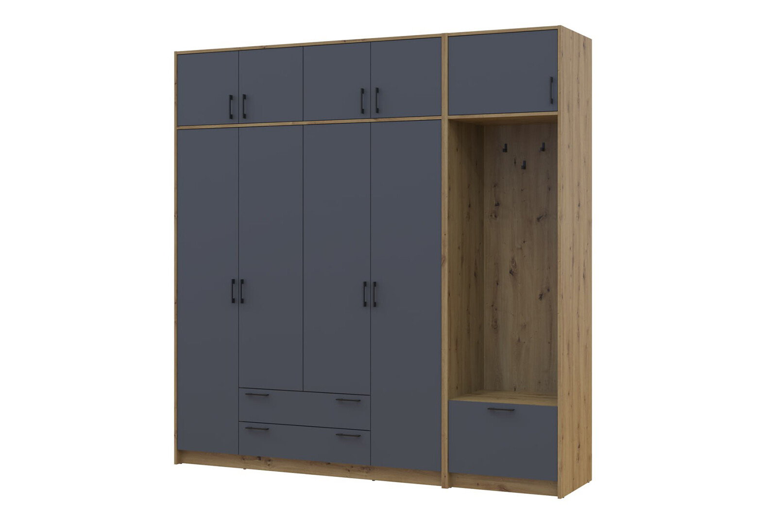 Шафа для одягу 4 ДСП Doros Ронді з вішалкою та антресолею 220 см Дуб Артізан / Графіт