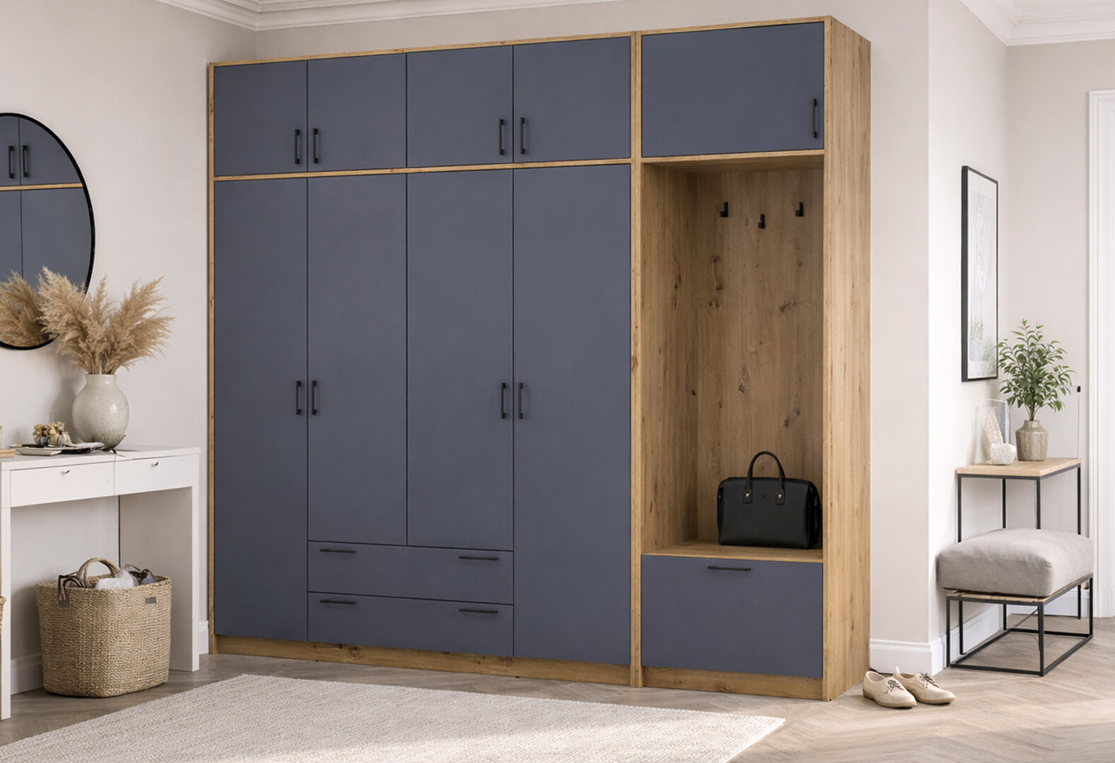 - Шафа для одягу 4 ДСП Doros Ронді з вішалкою та антресолею 220 см Дуб Артізан / Графіт