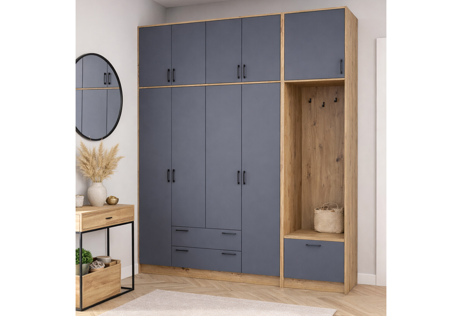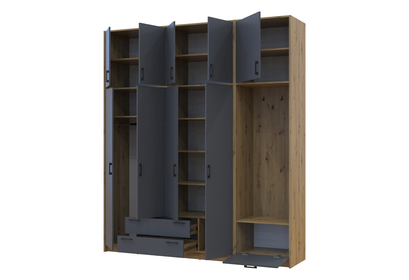 Шафа для одягу 4 ДСП Doros Ронді з вішалкою та високою антресолею 220 см Дуб Артізан / Графіт