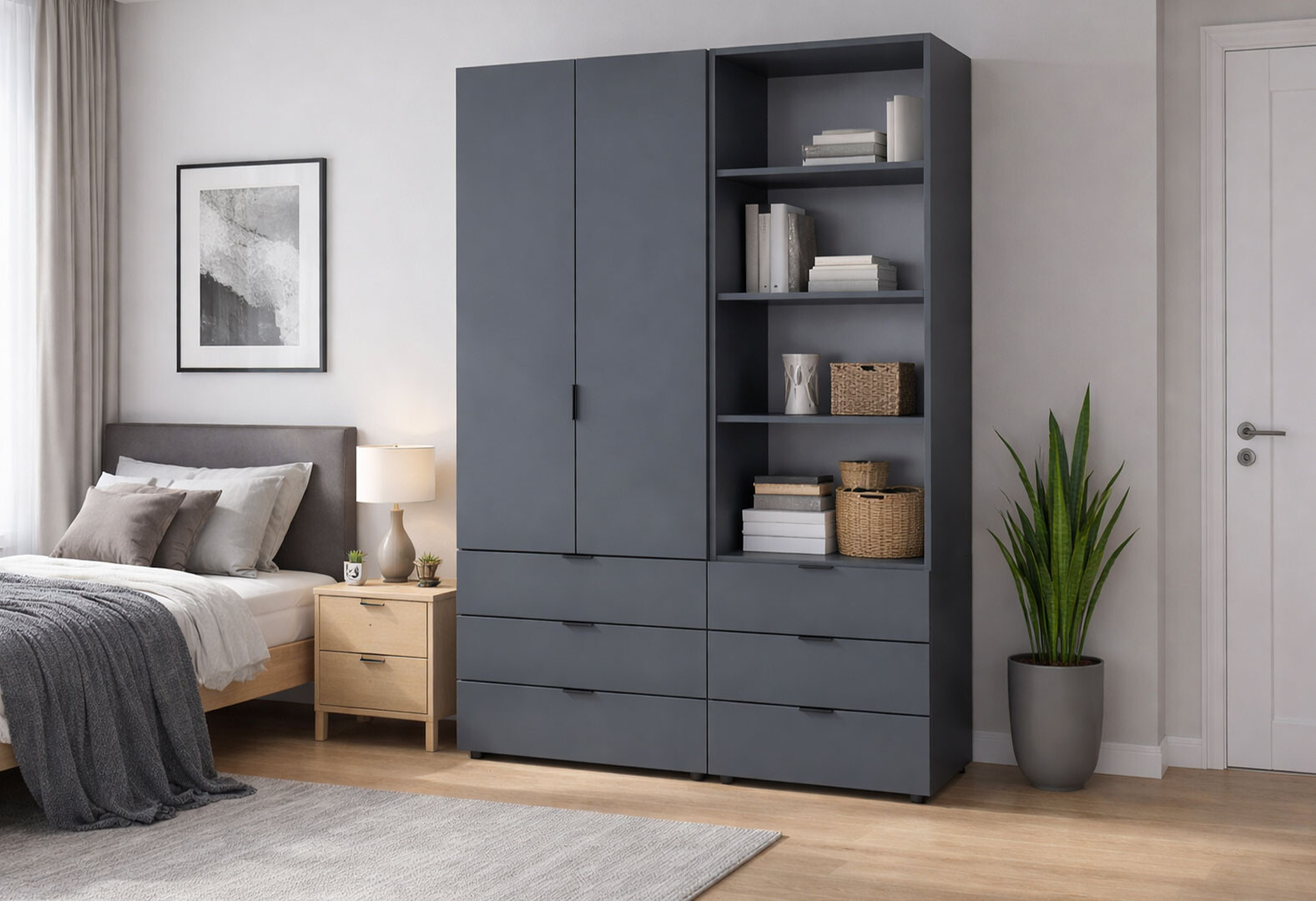 - Шафа Doros Гелар 2 ДСП 2-дверна з шухлядами та пеналом з відкритими полицями 137.5 см Графіт