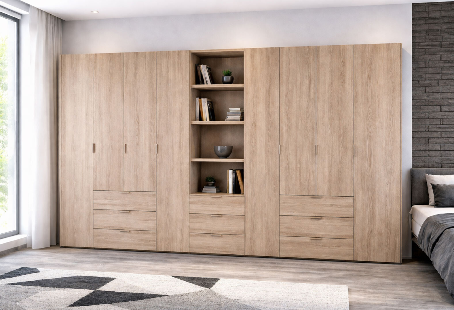 Шафа Doros Гелар 4+4 ДСП 8-дверна з шухлядами та пеналом з відкритими полицями 370 см Дуб сонома