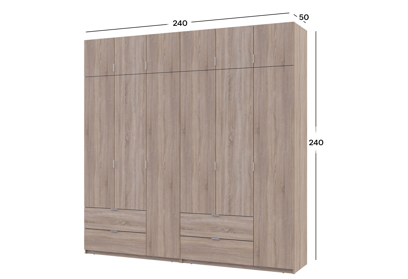 Шафа Doros Лукас 6-дверна з антресоллю 240 см, дуб сонома