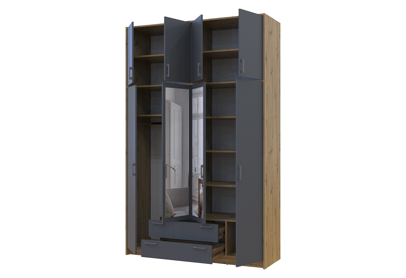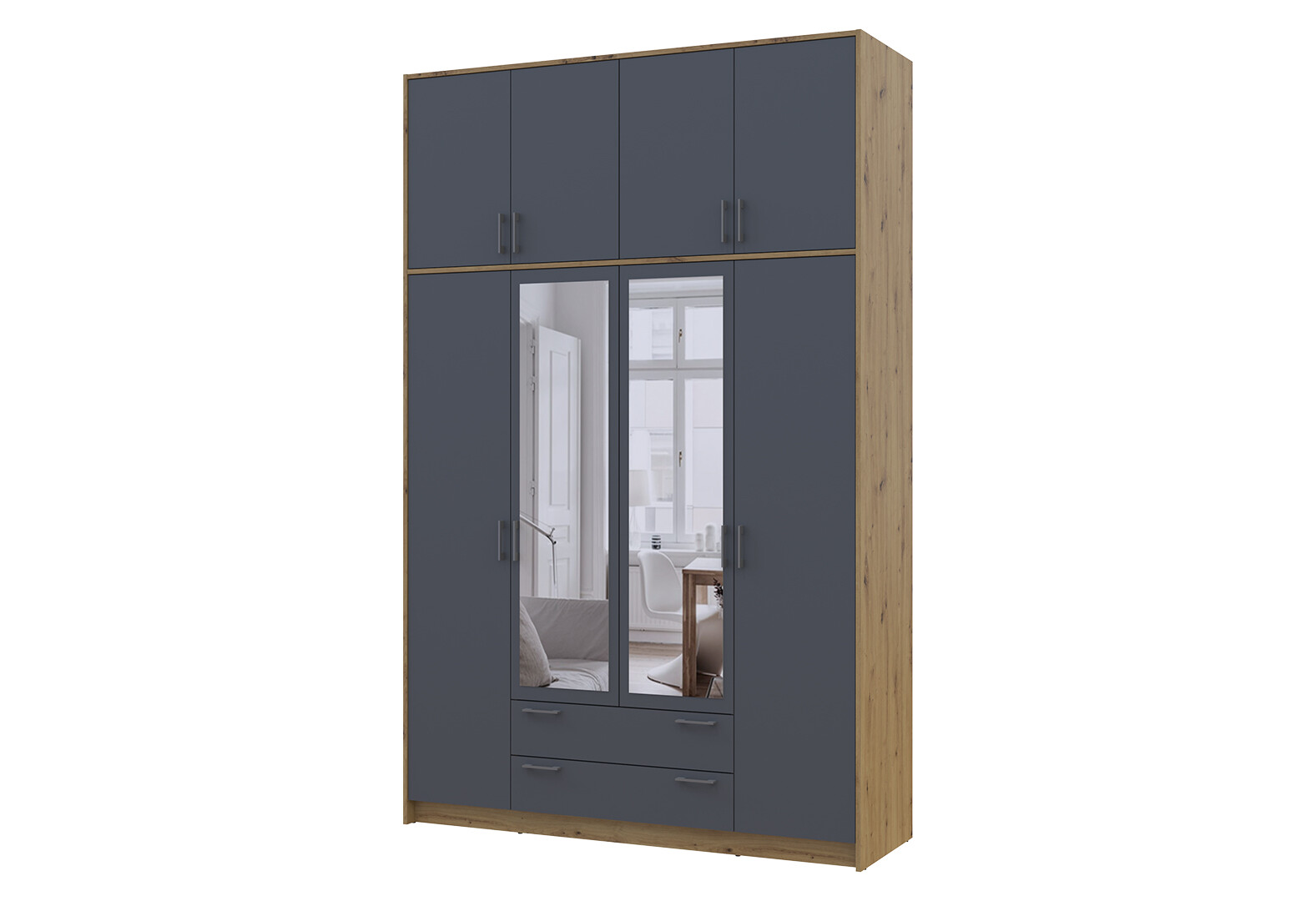 Зображення 5 - Шафа Doros Ронді 4-дверна з дзеркалом, високою антресоллю і 2 шухлядами 160 см Дуб Артізан / Графіт