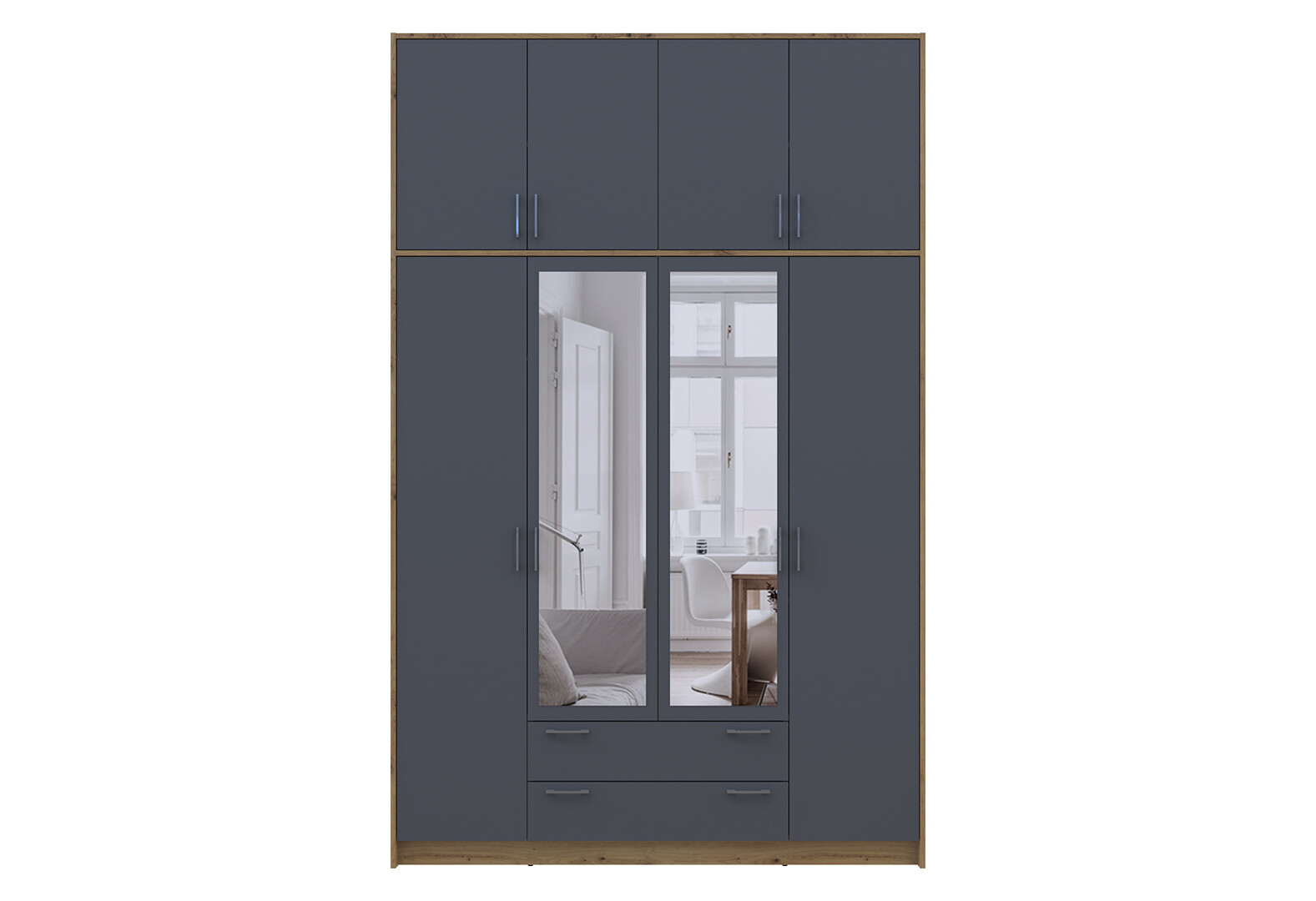 Зображення 6 - Шафа Doros Ронді 4-дверна з дзеркалом, високою антресоллю і 2 шухлядами 160 см Дуб Артізан / Графіт